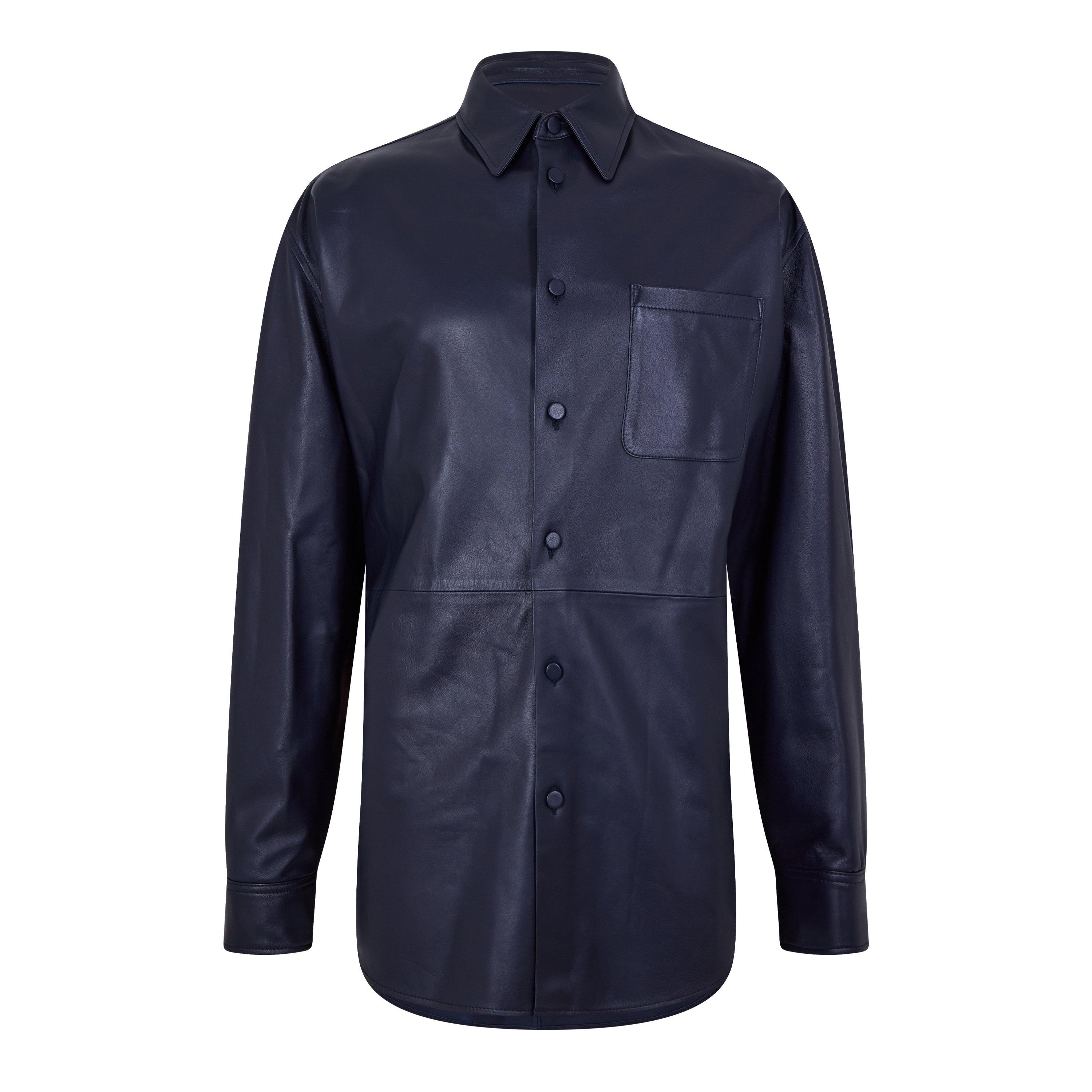 Off-White men's leather Long-Sleeve shirt. This piece features a clean design with a defined collar and precise cut for a structured look.