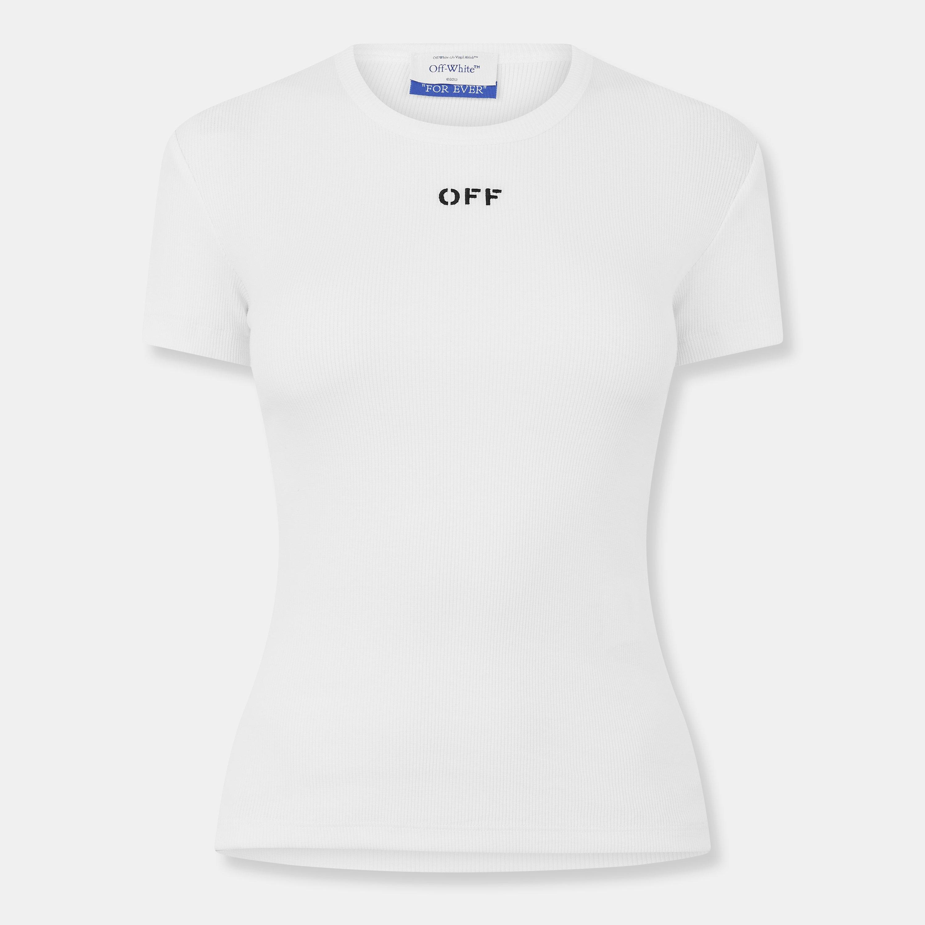 The Off-White Stamp Ribbed Cropped Baby Tee features a close-fitting fit. Branded detailing finishes the design.