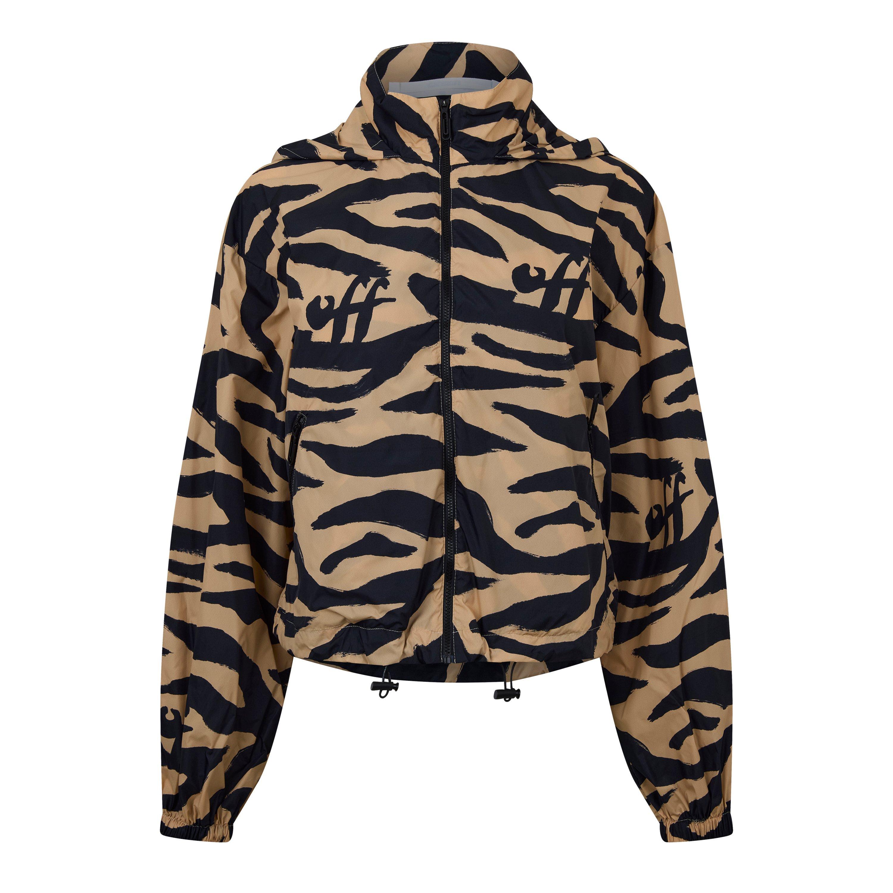 The Off-White Zebra Track Jacket brings edge to casual wear with its bold all-over animal print. Designed for comfort and flexibility throughout the day.