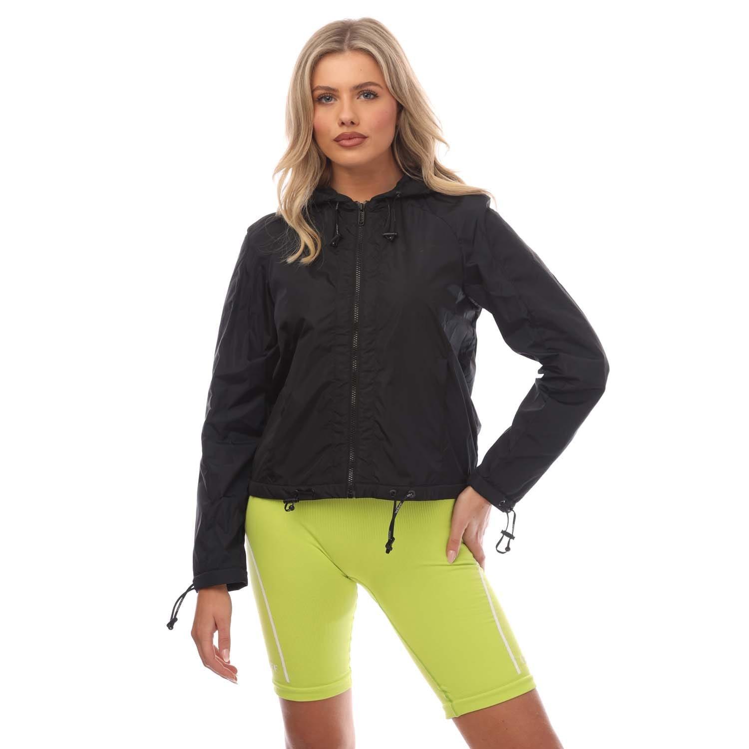 Womens Off White Swimming Man Windbreaker Jacket in black.