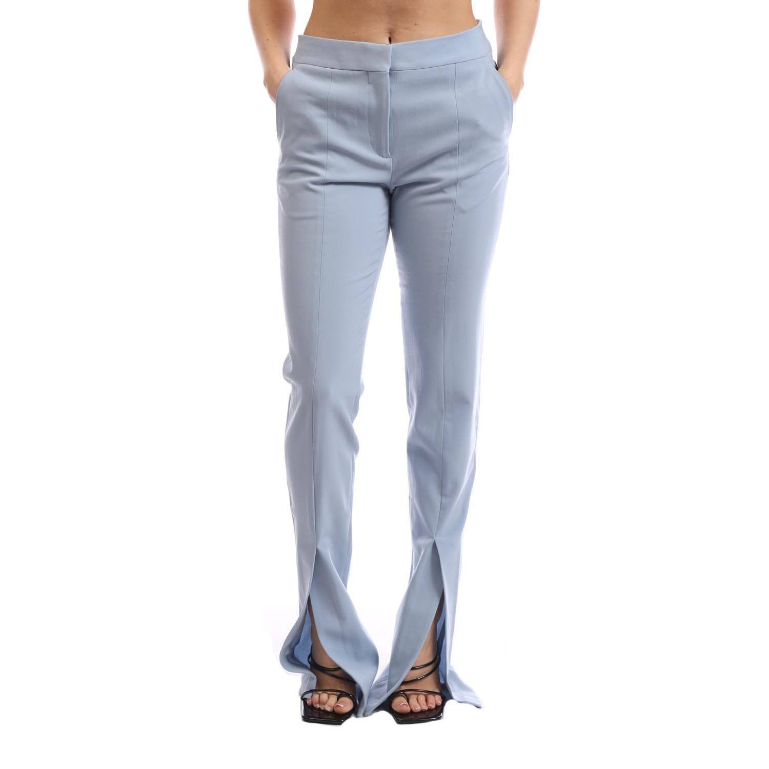 Womens Off White Wool Blend Basic Slim Pants in light blue.
