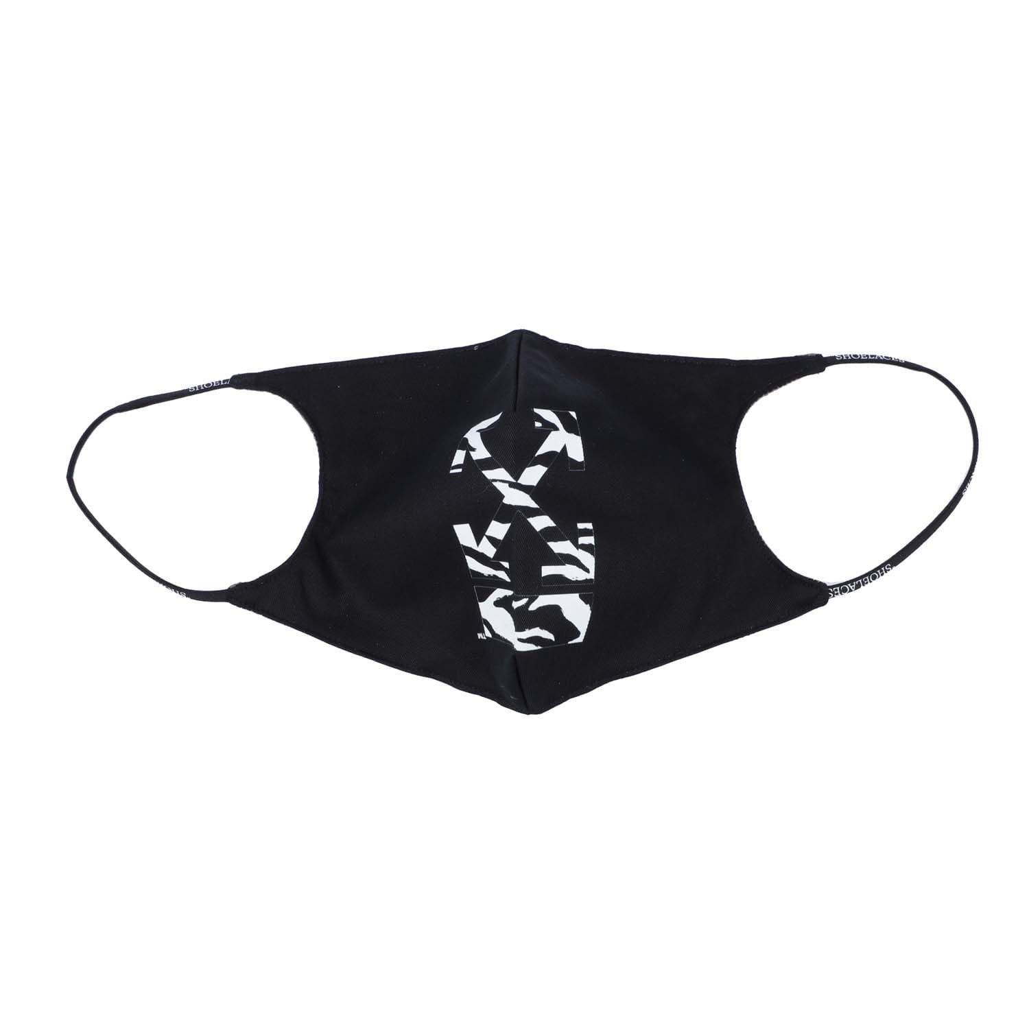 Face mask in black with zebra arrows printed at front. Outer: 100% Cotton. Lining: 1% Polyamide. 99% Metallic Fibre.