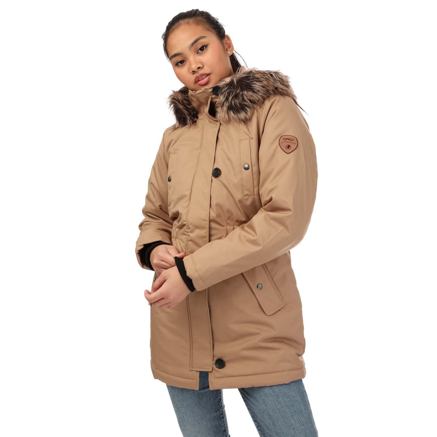 Womens Only Iris Winter Parka Jacket in brown.