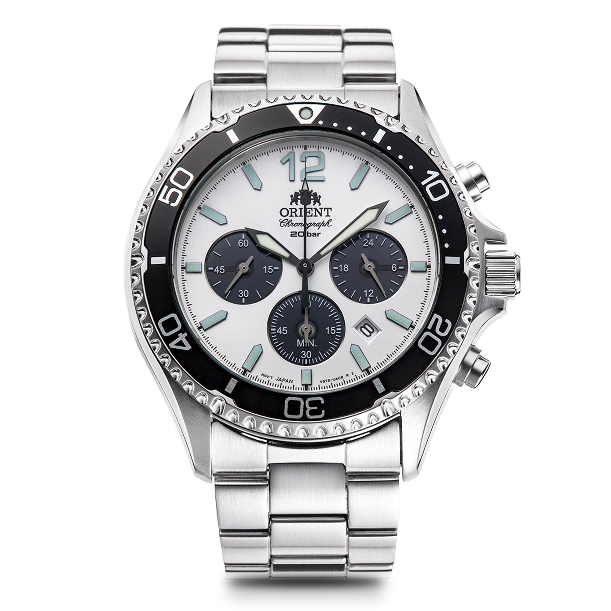 The first solar-powered chronograph in the Mako family, featuring three-dial design and 200m water resistance. POWERED BY SUNLIGHT The Orient Mako Chronograph Solar brings together dive and chronograph design elements, and is equipped with the convenience of solar-powered battery. This new model is powered by converting energy obtained from sunlight and other light sources into electrical energy, so there is no need to replace batteries. Charging is achieved through the three subdials; a 24-hour indicator at 3 o’clock, a 60-minute counter at 6 o’clock, and a small second subdial at 9 o’clock. The watch also features uni-directional rotating bezel while an Arabic numeral, inspired by the first Orient Mako model, adorns the 12 o’clock position. With a sapphire crystal and generous 200m water resistance, it is perfectly suited for a range of environments.