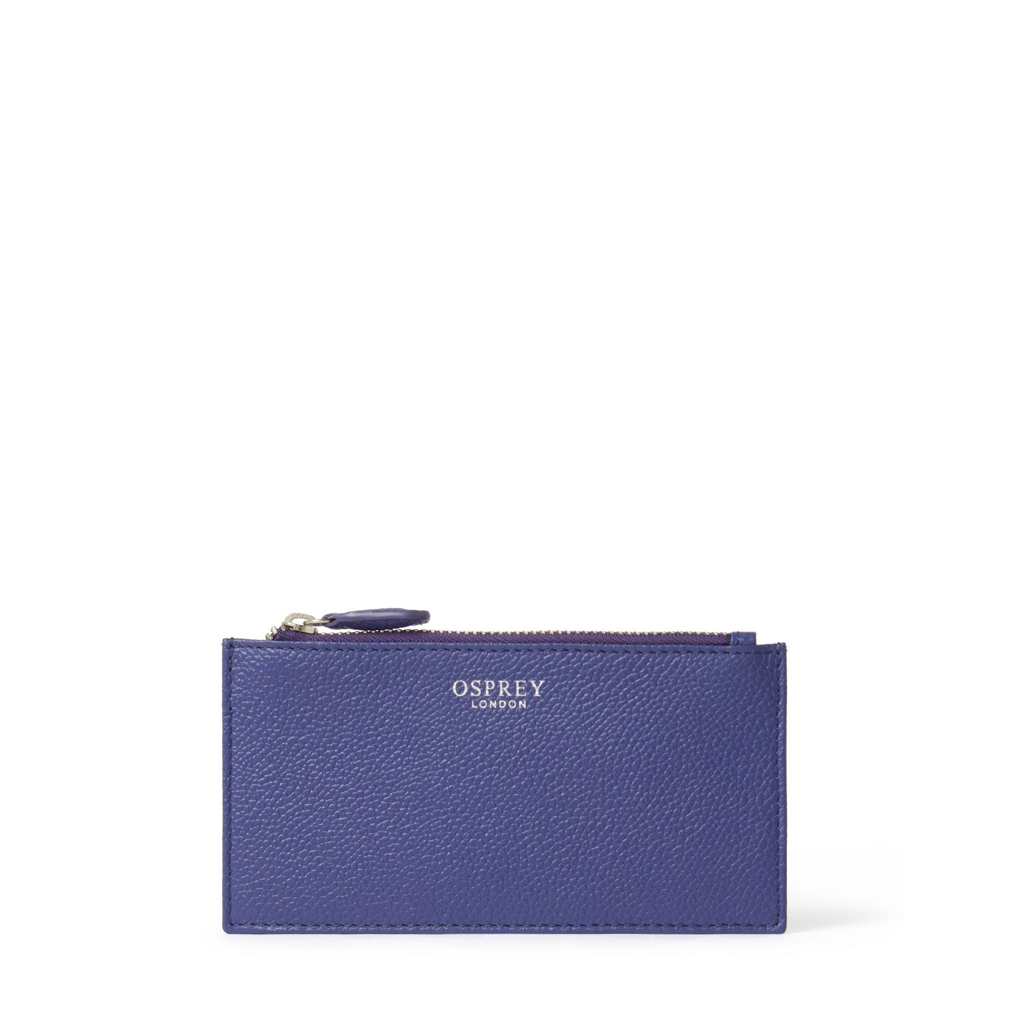 Handcrafted in luxurious pebble-grain leather, the Molly Zip Top Leather Card Pouch from OSPREY LONDON offers sleek sophistication and compact convenience. Ideal for carrying in smaller handbags, this chic accessory blends minimalist design with practical storage. Featuring the iconic OSPREY LONDON logo embossed elegantly in silver foil on the front, the reverse includes four handy card slots and an additional slip pocket – perfect for storing receipts or tickets. The zipped coin compartment, lined in the brand’s signature stone jacquard fabric, provides secure and stylish storage for coins and small essentials.
