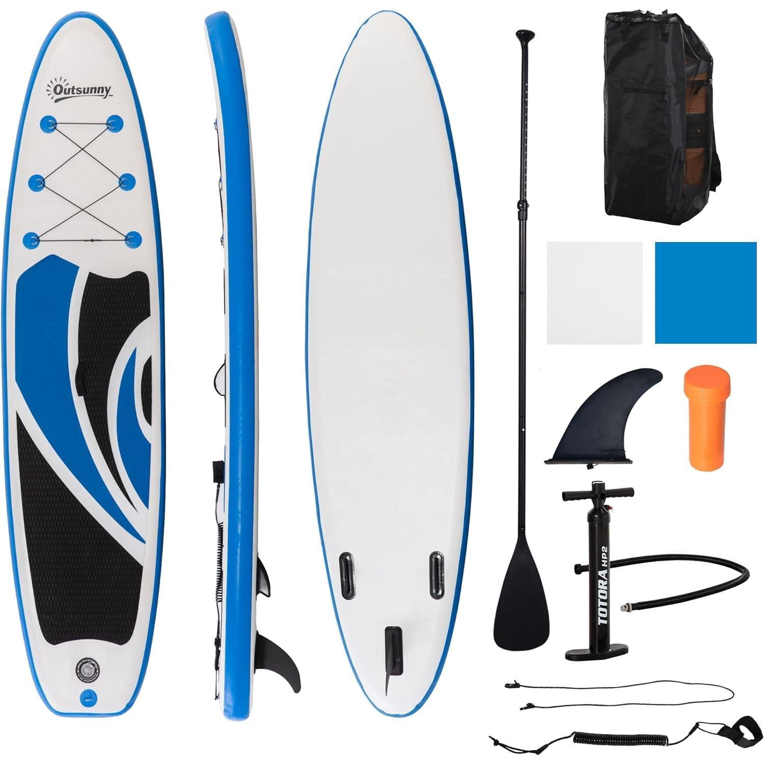 Water made extra fun, thanks to this stand up paddleboard from Outsunny. It comes with an adjustable paddle to suit different heights, whilst the removable fins allow you to move forward in a straight line. There's a bag included for travelling with the board, which is lightweight and foldable, making it easier to carry. The non-slip EVA provides extra grip when using, whereas the D-shape buckle and ropes keep you secure to the stand up paddleboarding – a safe way to enjoy water activities.