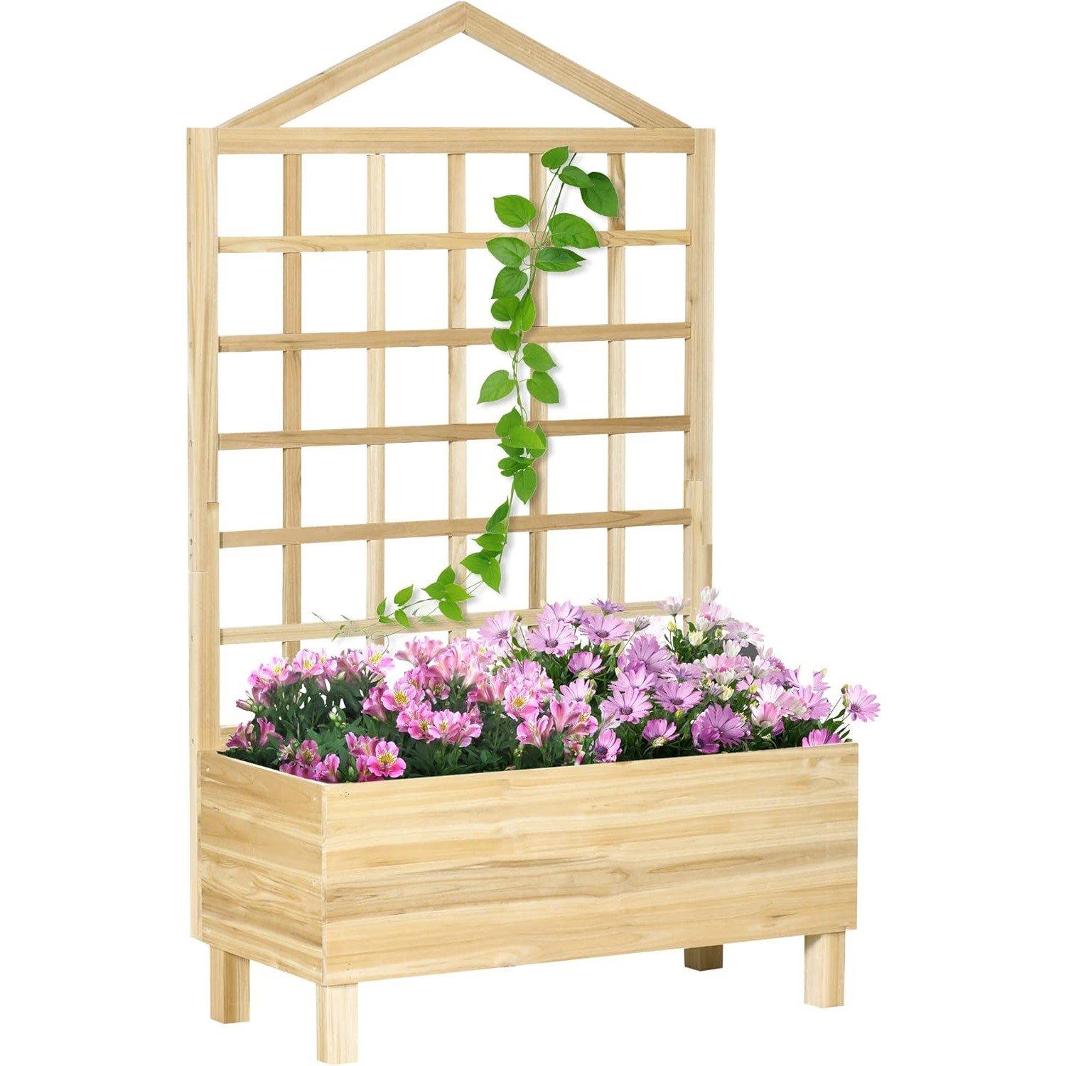 Features: Trellis for climbing plants Fir wood structure is strong, with protective paint coating Planter comes with fabric bag to keep soil and plants together, with two bottom water drainage holes Portable and compact - growing place options are endless Assembly required Specification: Colour: Natural Tone Material: Fir Wood Overall Dimension: 90L x 43W x 150H cm Planter Box Interior Size: 88W x 38D x 25H cm Lattice Size: 90W x 136H cm Foot Height: 12 cm Weight Capacity: 100 kg Item Label: 845-883V01ND Package Includes: 1 x Garden Bed 1 x Manual