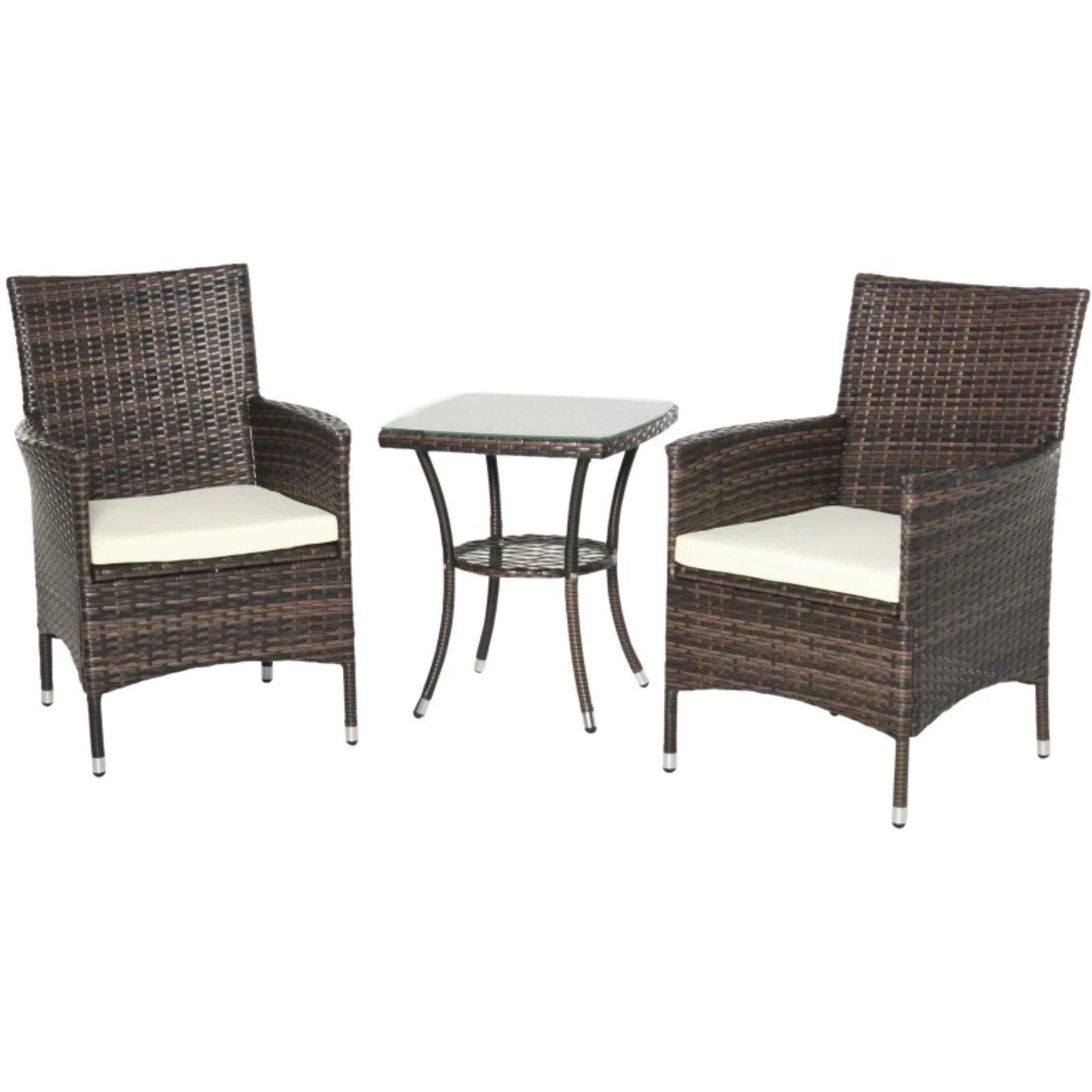 Outsunny 3pcs furniture set perfect as a conversation set for any patio, deck, sunroom, or garden, our Outsunny rattan coffee table and chairs will create a classic centerpiece in any setting. Made from PE wicker rattan, this set is UV resistant, water resistant, and is built to last. These lightweight chairs and table are easily movable and simple to store as the seasons come and go.