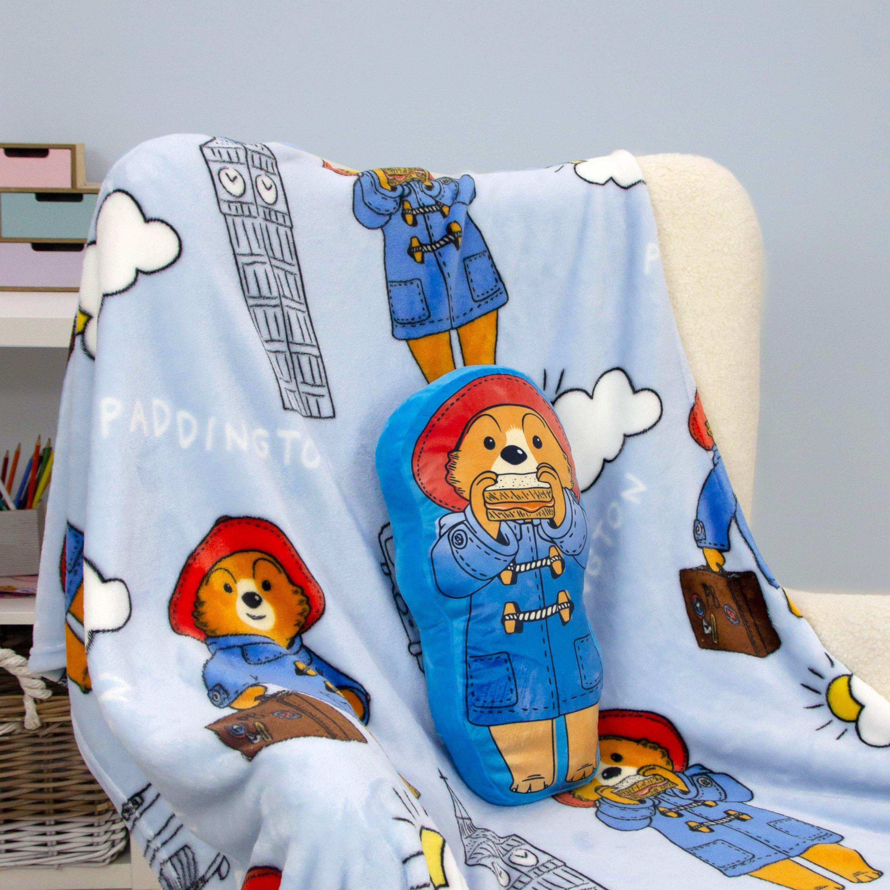Adored by young and old alike for generations, from books to cartoons and films, this officially licensed Paddington Bear shaped cushion is perfect for Paddington fans of any age. The shaped cushion features the much loved Paddington Bear in his iconic blue duffle coat and red rain hat eating his favourite snack, a marmalade sandwich! Paddington Bear is printed in a watercolour style, and set on a blue background that runs on to the reverse side. Perfect as a Christmas present or a gift throughout the year, for kids or adults alike, and great to brighten up a bedroom, sofa or armchair. It’s packed with padding to support them when they’re gaming in a chair, and comfortable enough to snuggle up on a sofa with on movie night, or even as a fun comforter for young children. The cushion measures approximately 40 x 30cm, and is perfect for any Paddington Bear fan young or old. This Paddington shaped cushion makes for a perfect companion accessory to our official Paddington bedding set or fleece blanket.