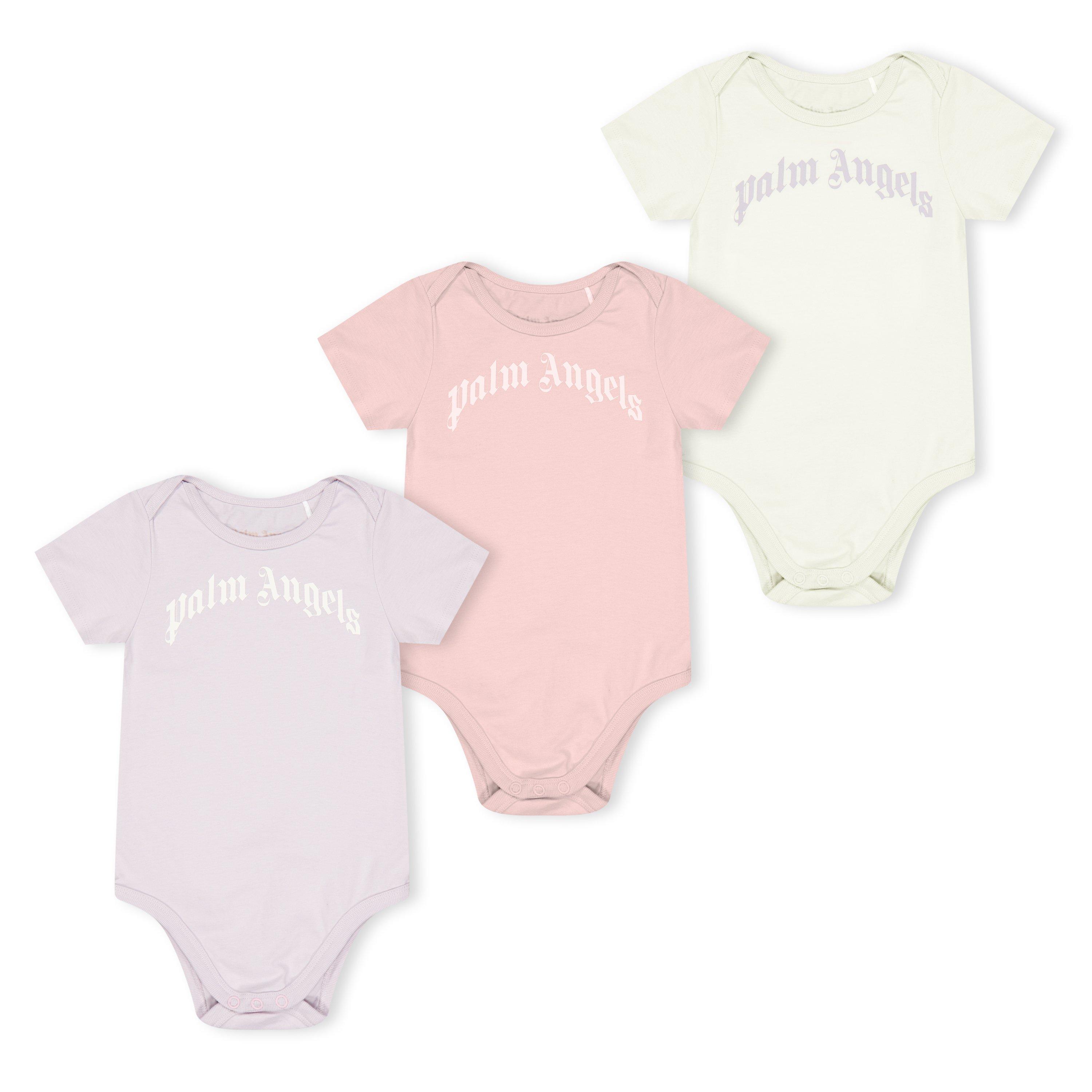 Elevate your bundle of joys essential collection with this 3 pack of all in one baby grows from Palm Angels. Soft, breathable and snugly, these baby grows are perfect for throughout the week wear, for ease of dressing and styling.