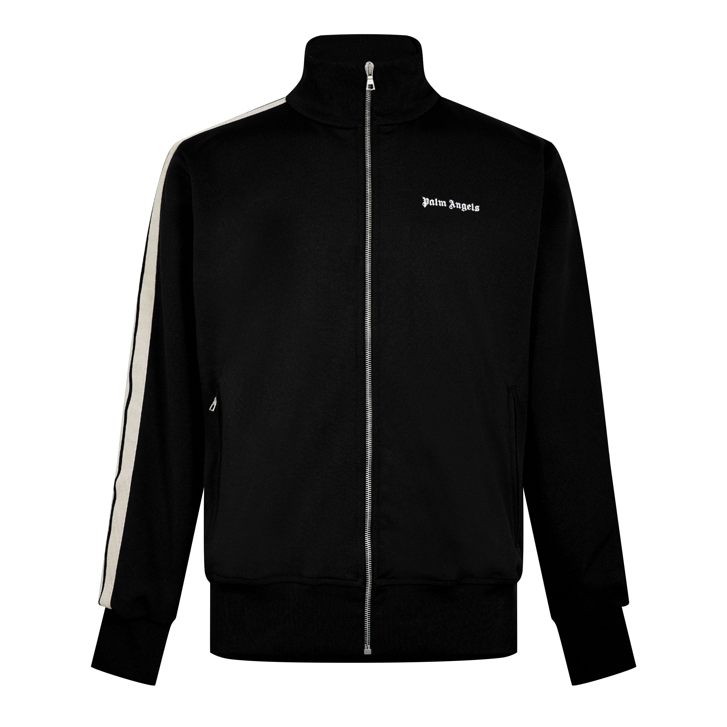 Revitalise your casual collection with this Classic Tracksuit Jacket, brought to you by Palm Angels. Adroitly crafted in premium polyester, this modern classic silhouette features a stand collar, full-length sleeves, two zipped hand pockets, a central zip fastening, ribbed trims to the cuffs and a straight hem, and tone-on-tone stitching. The solid base colouring provides an excellent foundation to style this piece into any off-duty ensemble, and the side stripe tape to the shoulders and sleeves offers a sporty accent. Finally, the Palm Angels logo completes the look and ensures instant brand recognition. Fabric / Embroidery / Lining / Detail: 100% polyester; Rib Detail: 96% polyester, 4% elastane. For care instructions, refer to garment labelling.