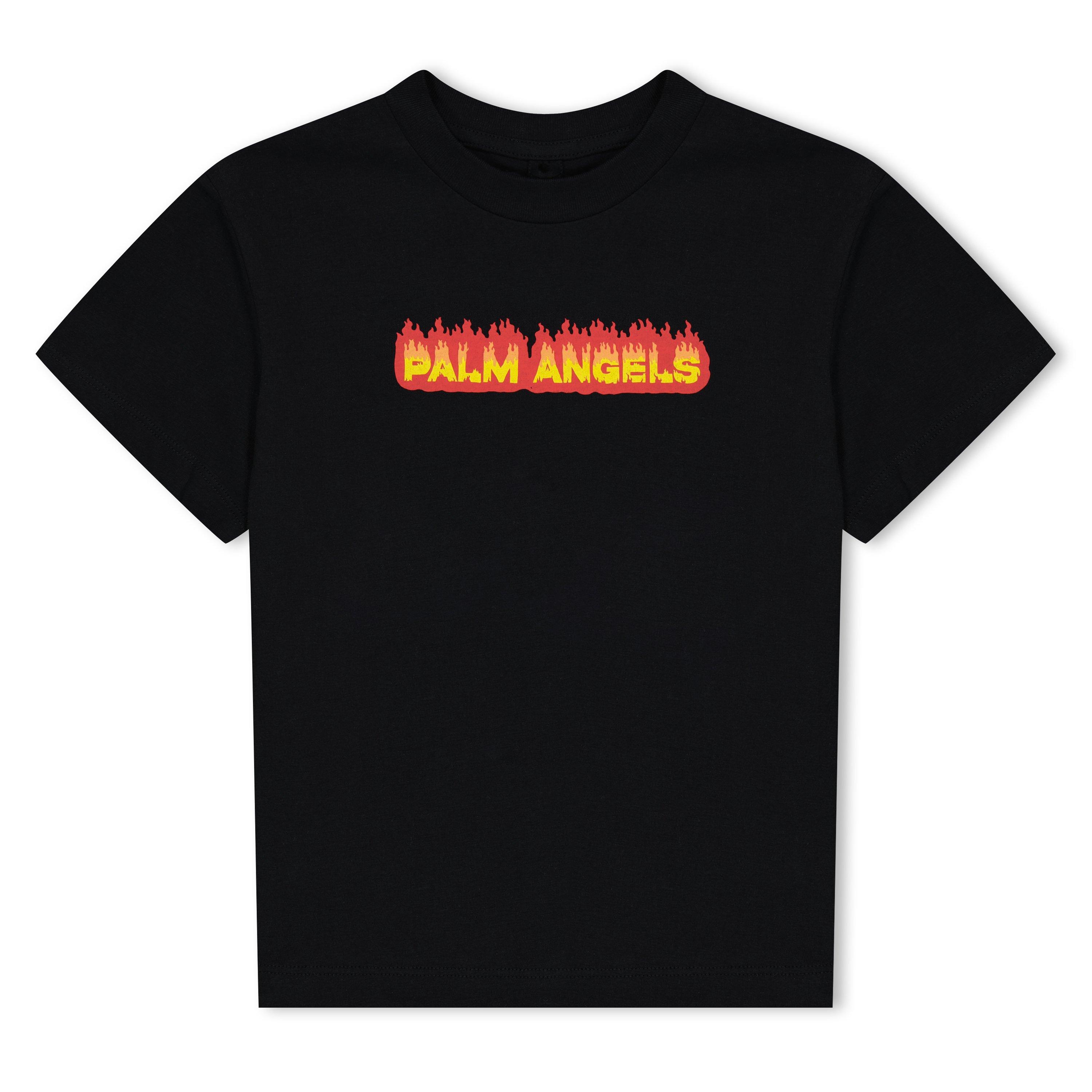 Palm Angels Kids' Flame Logo Print Regular Fit T-Shirt delivers bold streetwear style scaled for younger fashion enthusiasts. The flame motif stands out against the relaxed shape.
