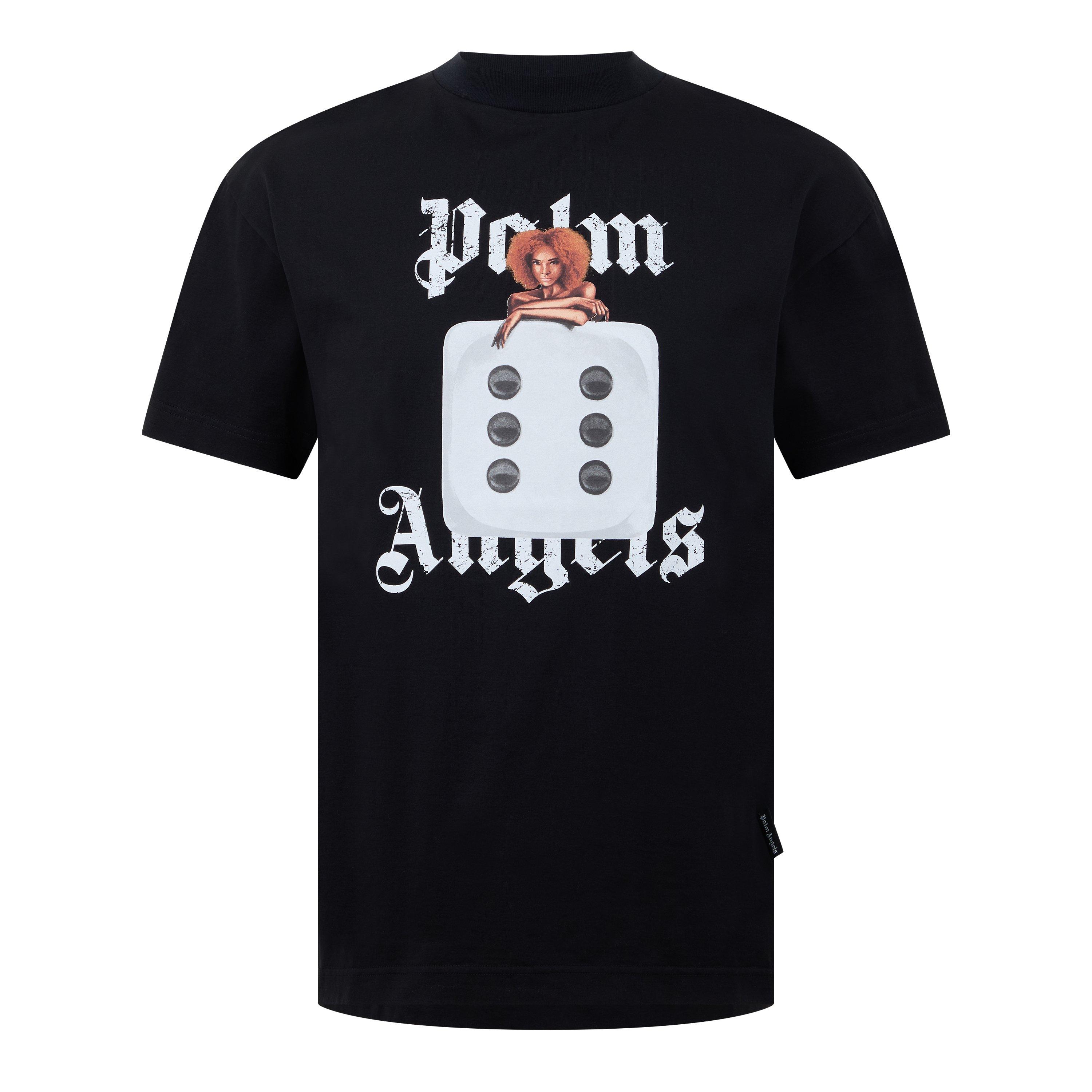 The Holly Pin Up T-Shirt by Palm Angels features a striking dice and pin-up graphic, blending vintage flair with a playful edge. The vibrant design captures the excitement of chance with a nod to retro pin-up style, perfect for those who love a bit of fun and nostalgia in their wardrobe. Perfect for a casual day out or a stylish brunch with friends.