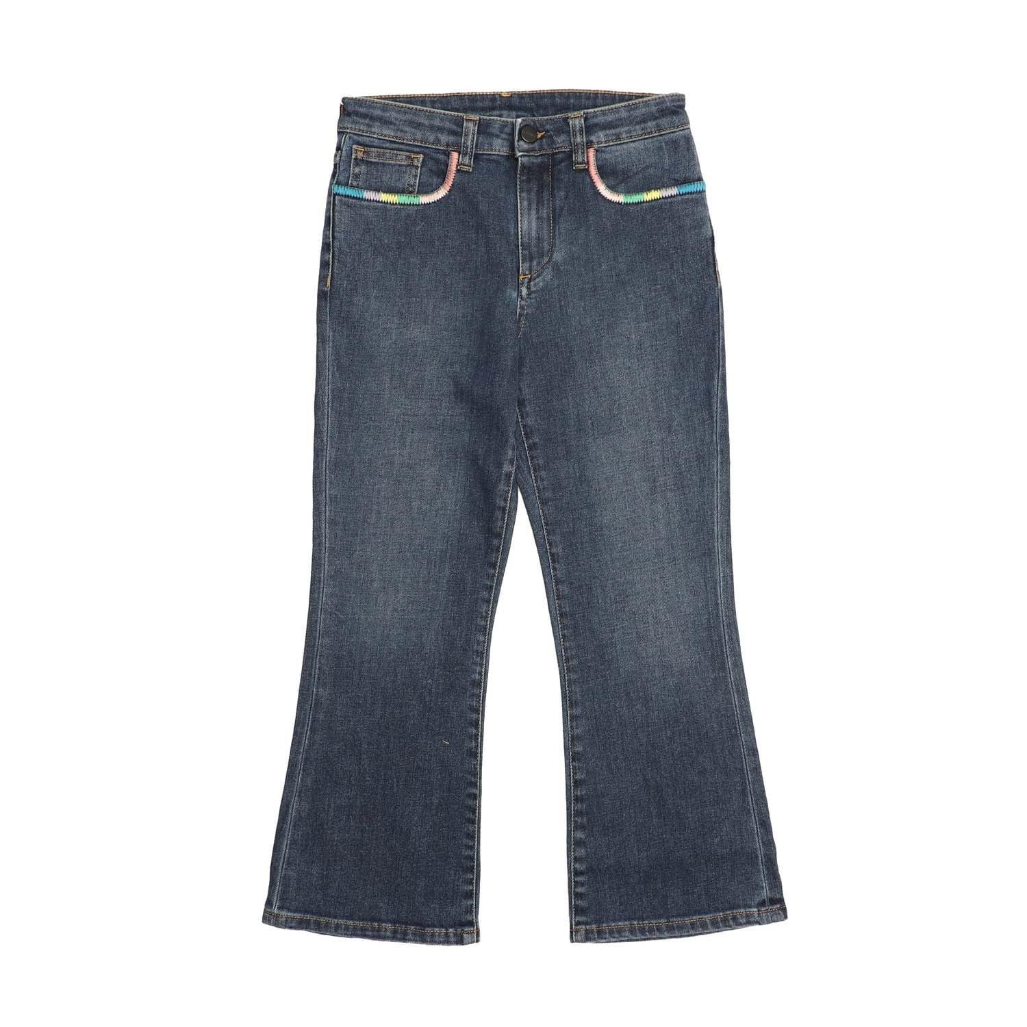 Girls Palm Angels Medium Wash Embroidered Denim Jeans in blue.