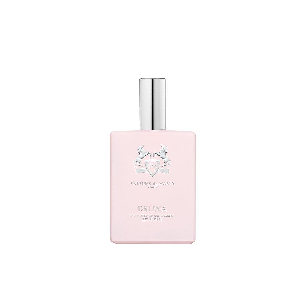 In accompaniment to its emblematic fragrance, Parfums de Marly has created a Delina body oil. This light, non-greasy formula sublimates the skin, adorning it with notes of rose damascena, rhubarb, lychee and bergamot on a subtle base of cashmeran and musk. Depending on skin tone and season, it stirs the original notes and further modulates their seductive power. A sensual, multi-faceted delight.