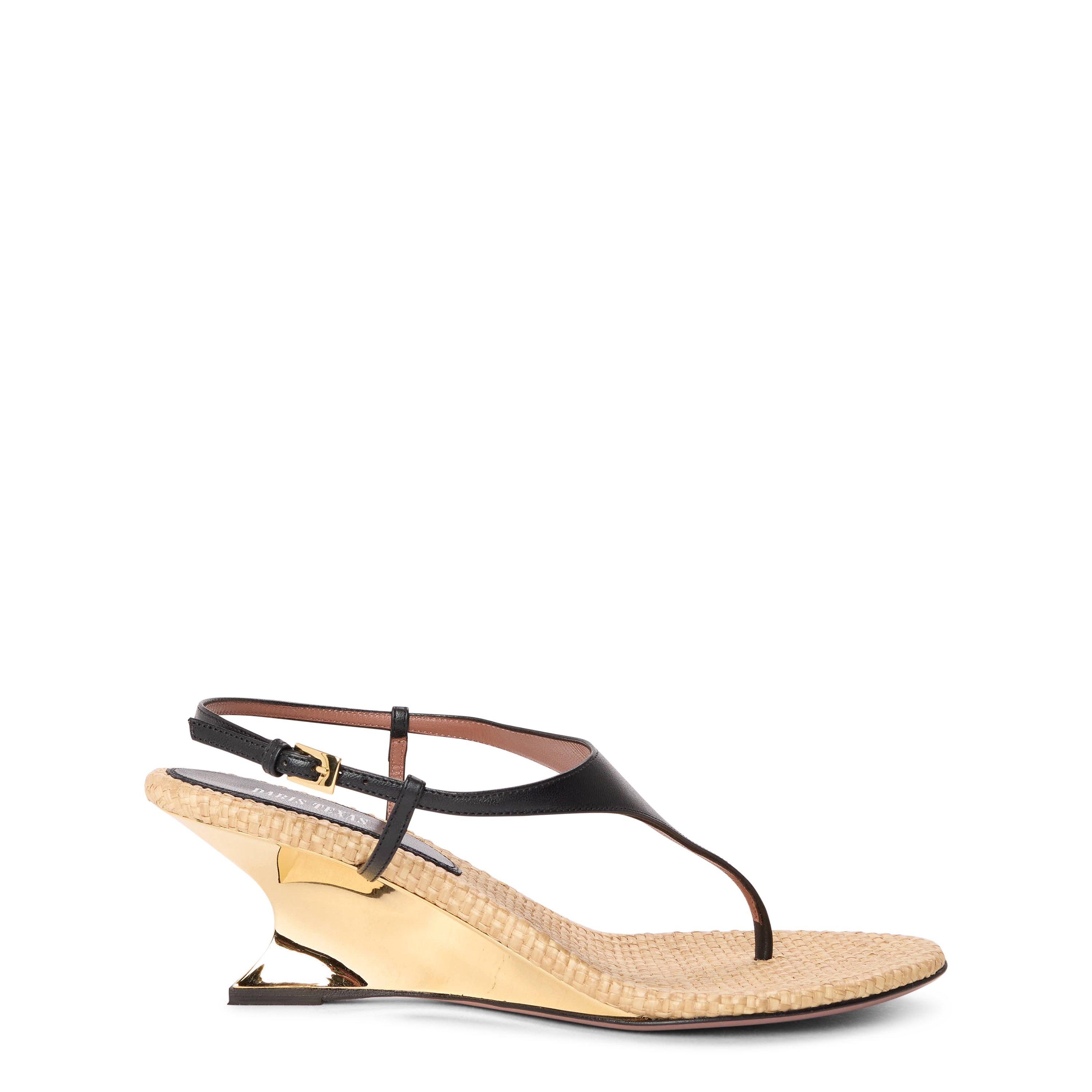 Paris Texas presents the Nina Thong 50, a heeled sandal shaped by a wedge base. Built to offer lift with a broad, grounded form.