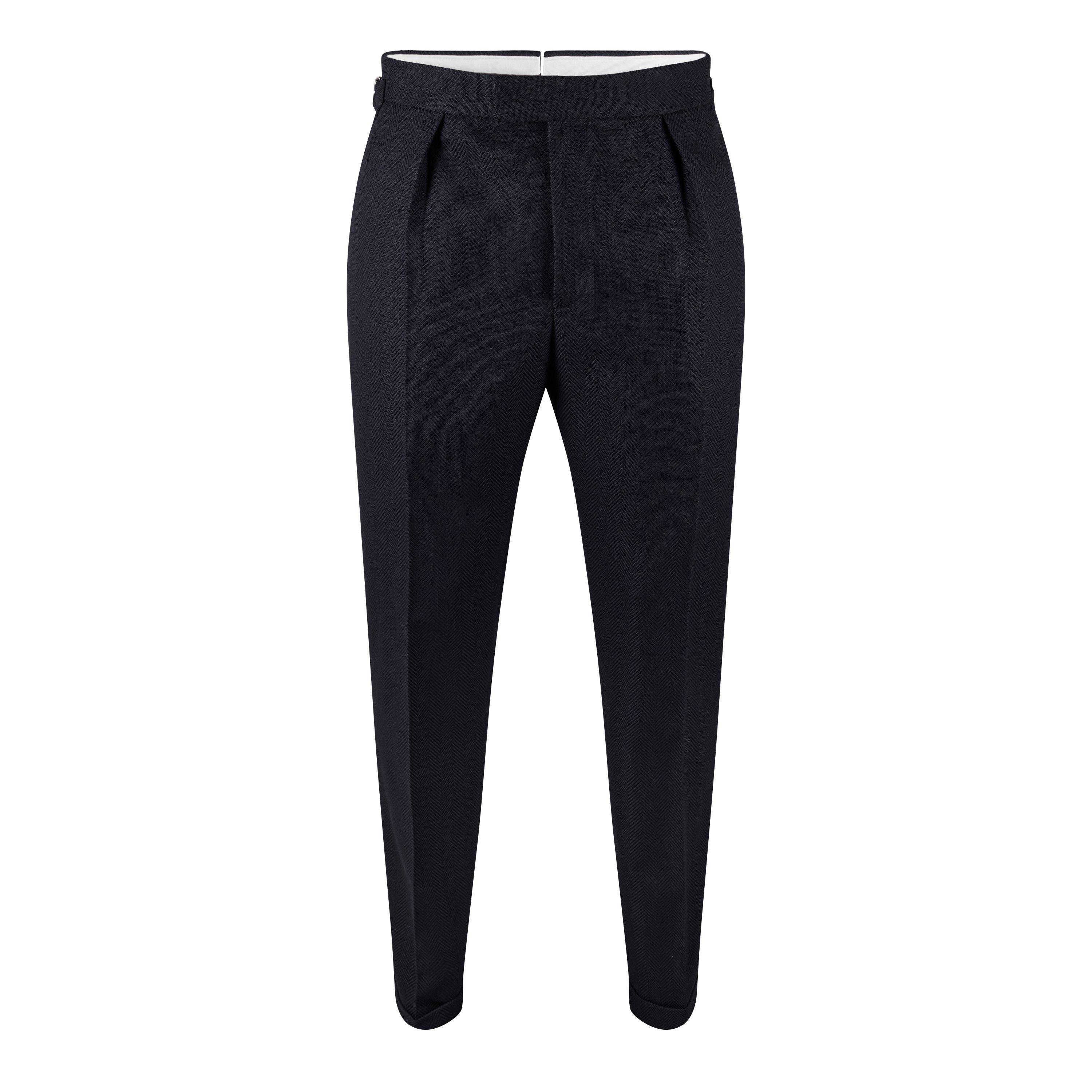 Patrick Grant StudioMen's Bond Tailored Fit Navy Herringbone Suit Trousers