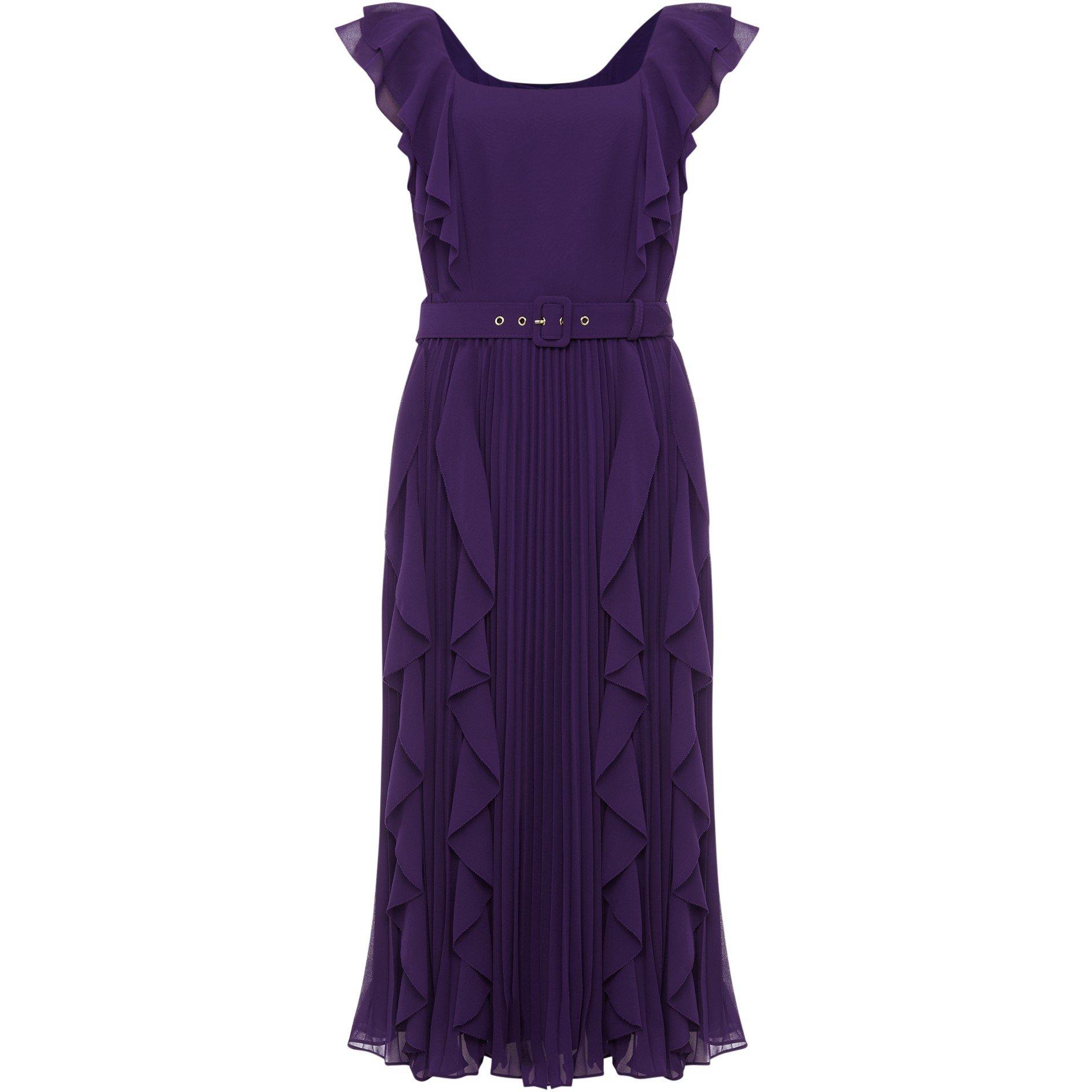 The Phase Eight Bailey Pleated Dress is a standout choice for your next special occasion. This dress features a flattering square neckline framed by ruffled short sleeves that flow into the bodice, complete with a covered belt for a defined waist. The elegant silhouette falls to a full pleated skirt adorned with ruffle details, creating a beautifully feminine look that's perfect for making an impression at any event.