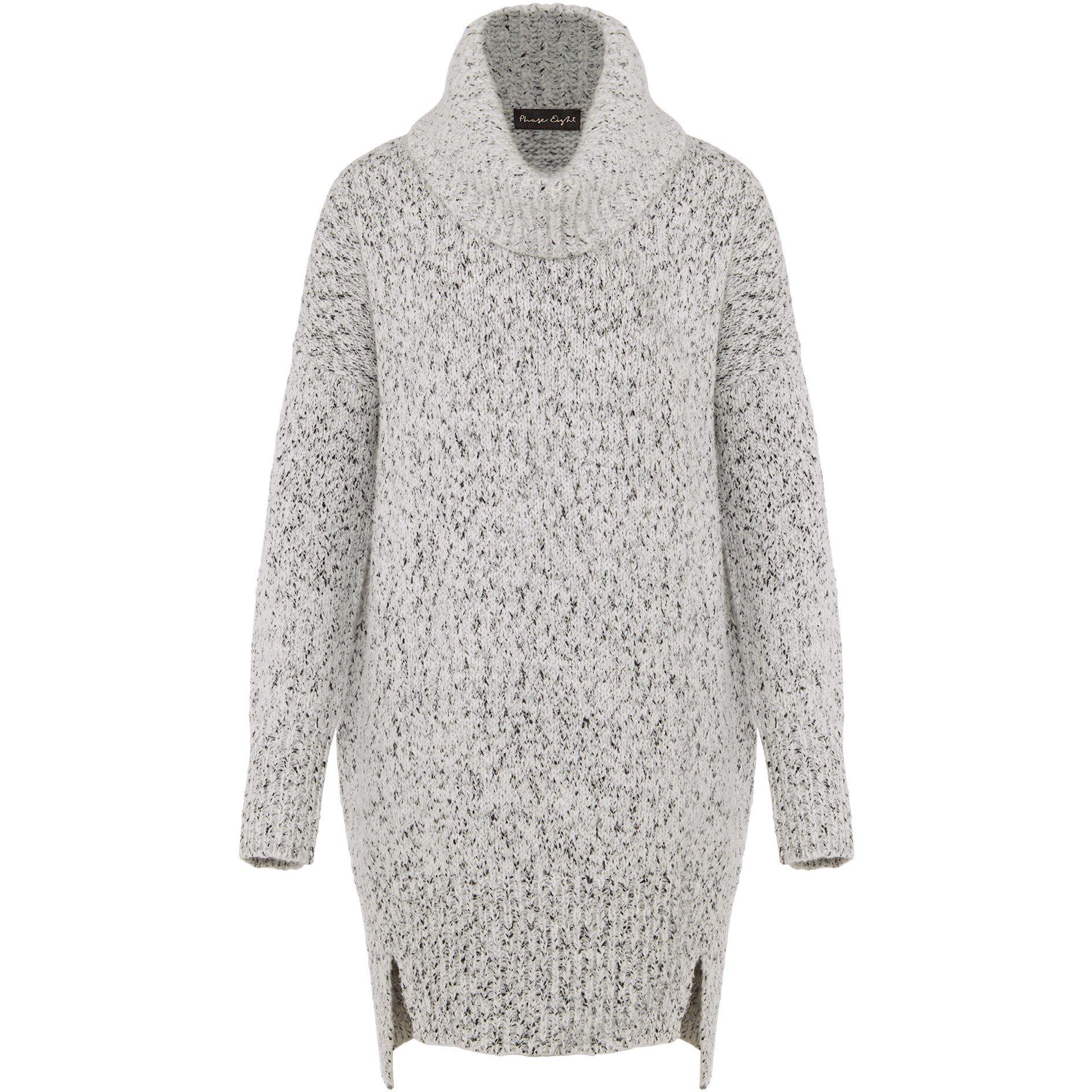 A new style for us. This super cosy jumper dress is designed with chunky ribbed trims and cable knit sleeves for ultimate cosiness. Featuring a multi-coloured fleck yarn throughout, we're wearing this style with jeans and ankle boots for an easy day look.