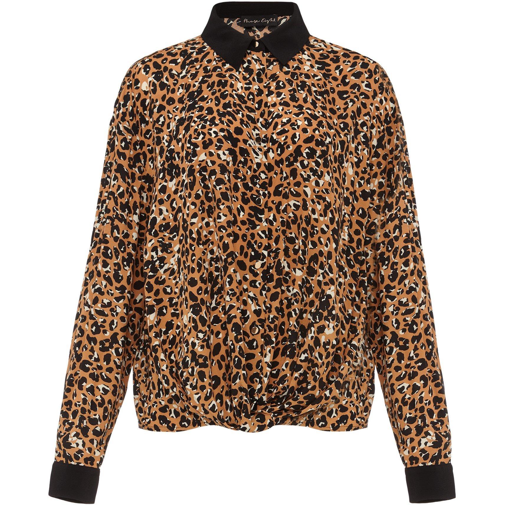 A new style for this season. Our Kaelie blouse showcases a striking leopard print with contrast accents and a twist detail at the front. Easily dressed up or down, this day-to-night style looks great worn with black jeans and ankle boots.