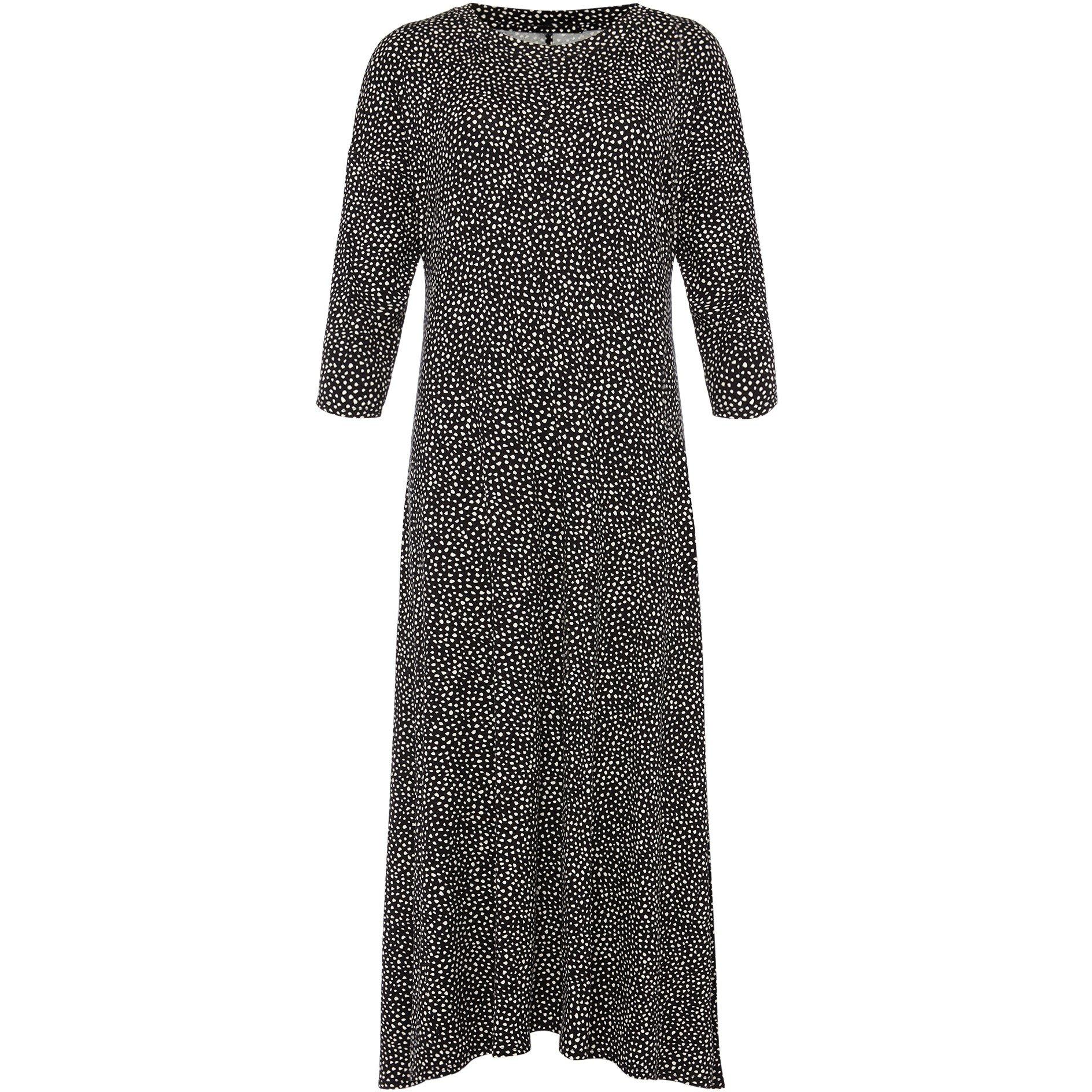 The perfect work to weekend dress. Our Paris style is printed with spots throughout for an eye-catching finish. Cut to a versatile midi length, this style is framed by 3/4 length sleeves and a curved hem. Pair with tights and boots and you're ready for the day ahead.