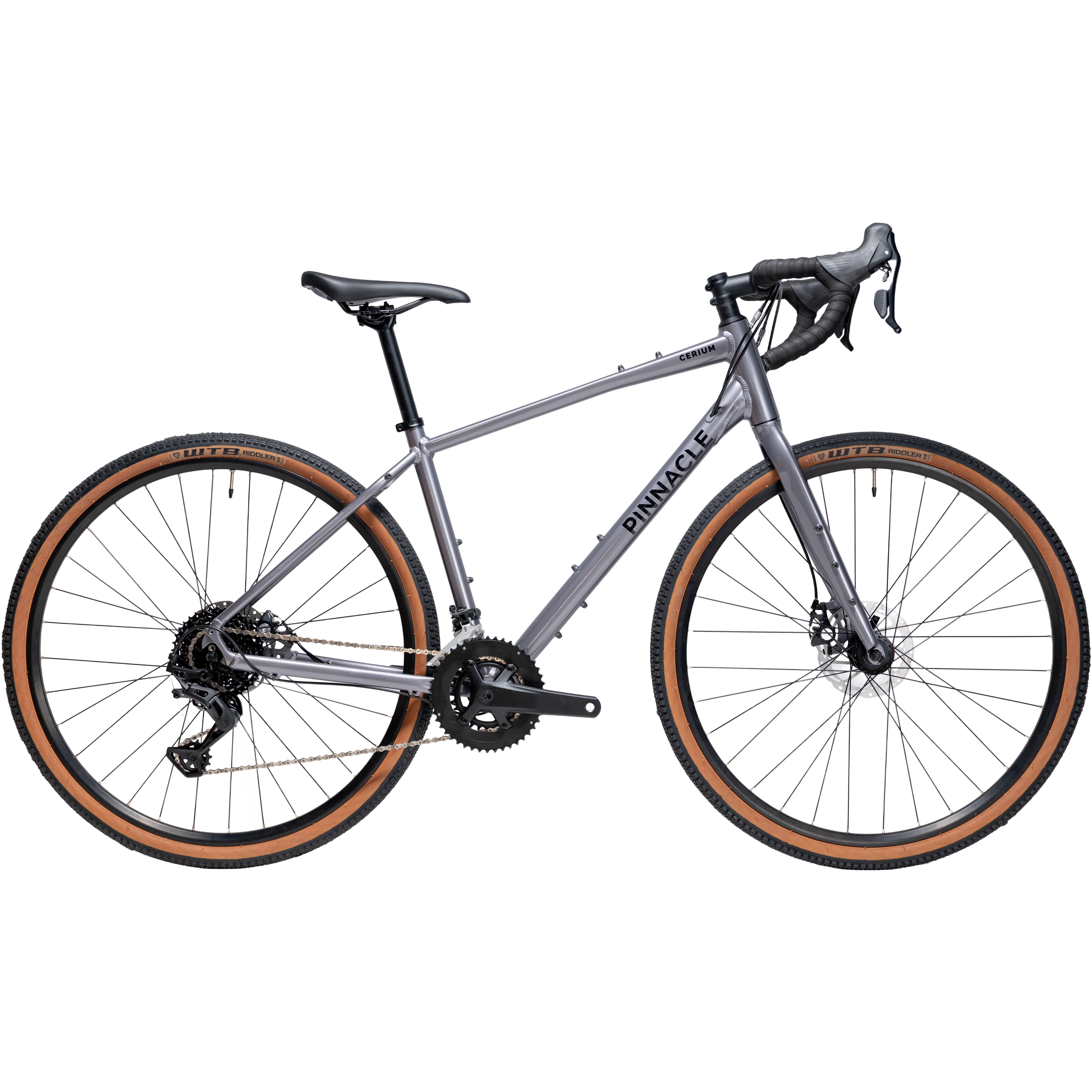 - Tyres: WTB Riddler, 700x45c, tan wall, wire bead, 30tpi.