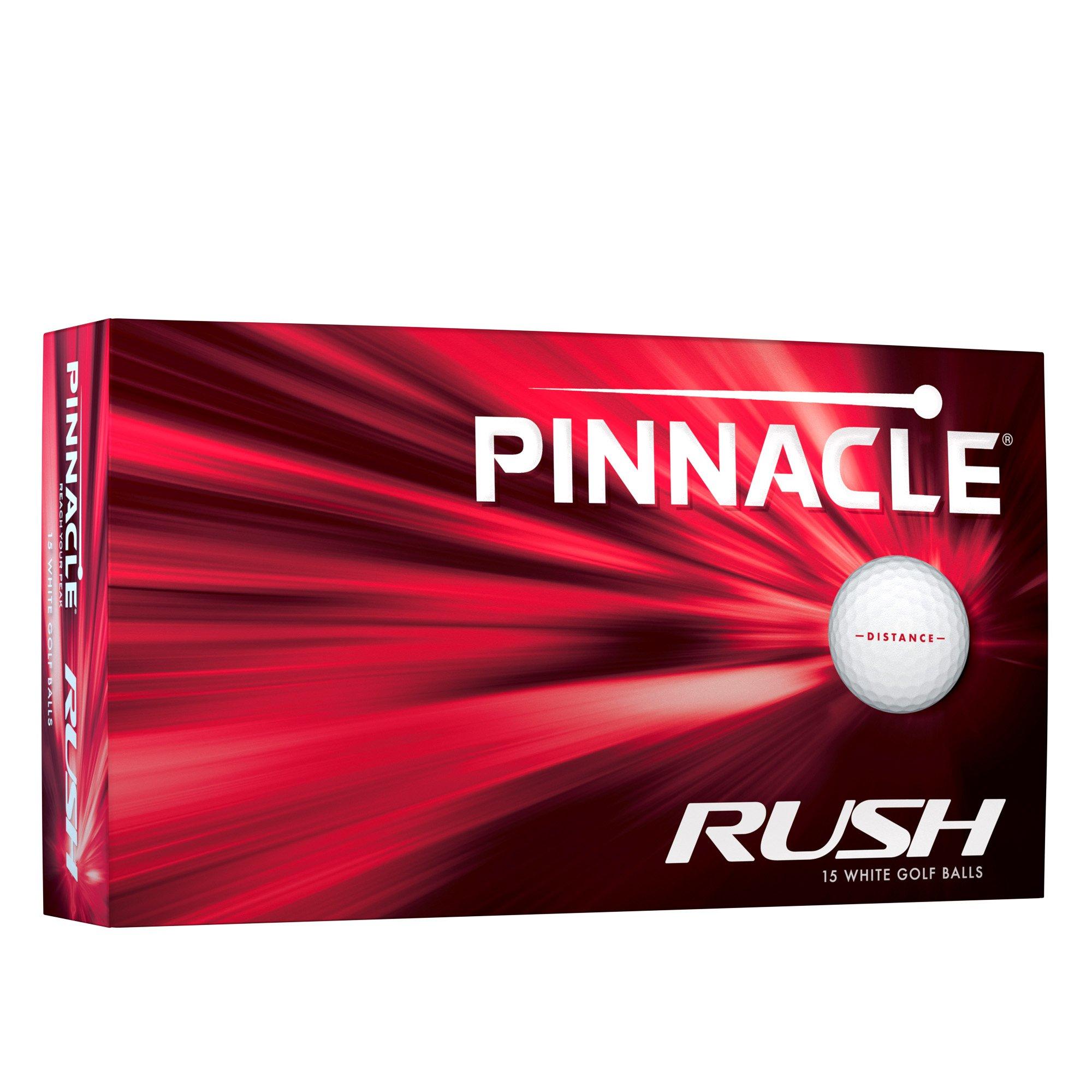 Pinnacle's Rush 15 Golf Balls pack delivers distance with a precision feel. The sculpted dimple pattern maintains flight stability while the resilient exterior is designed for regular use.