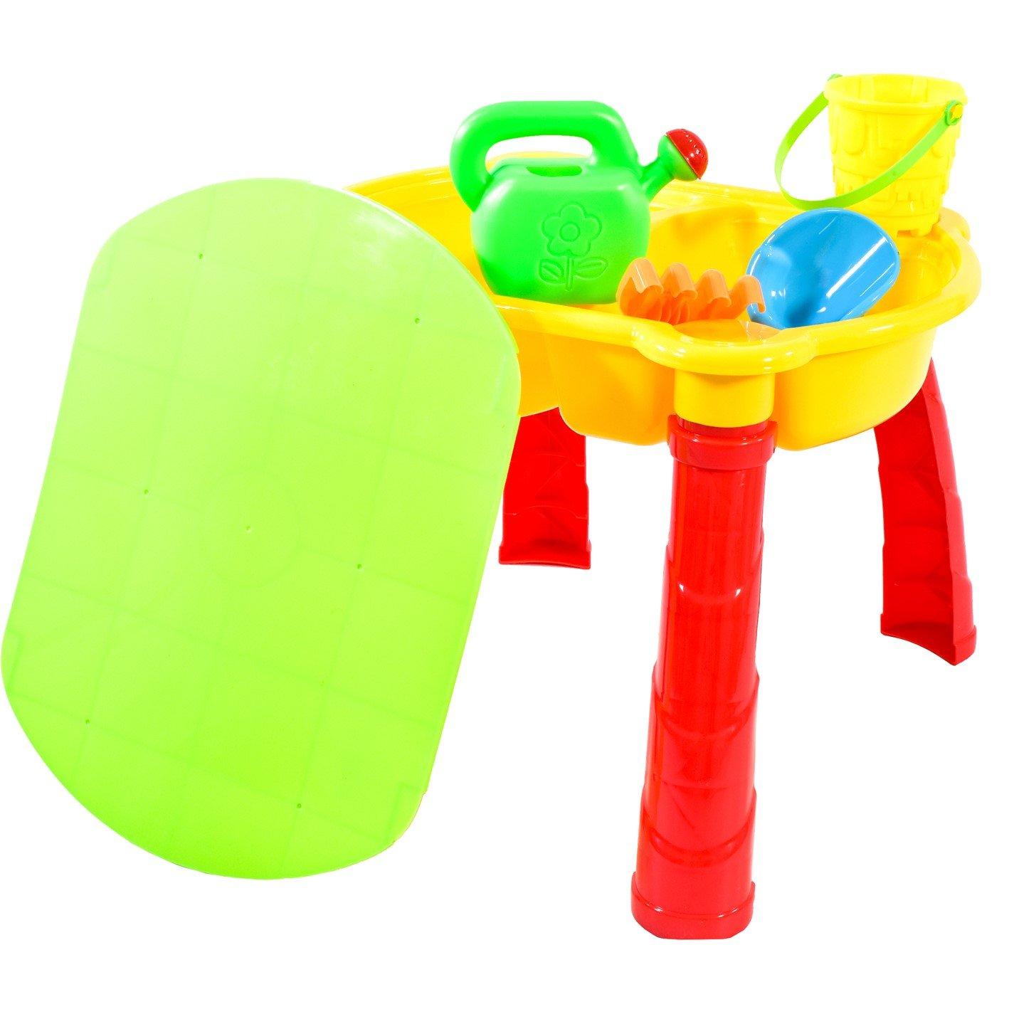 The KandyToys Sand and Water Table is designed for outdoor fun and hands-on play. Suitable for use in the garden or at the beach, it includes a range of accessories such as sand shapers, watering can, spade, fork, and bucket. The table comes with a lid, allowing toys and sand to be stored neatly when not in use. Brightly coloured and easy to assemble, it encourages creativity and sensory learning for young children.