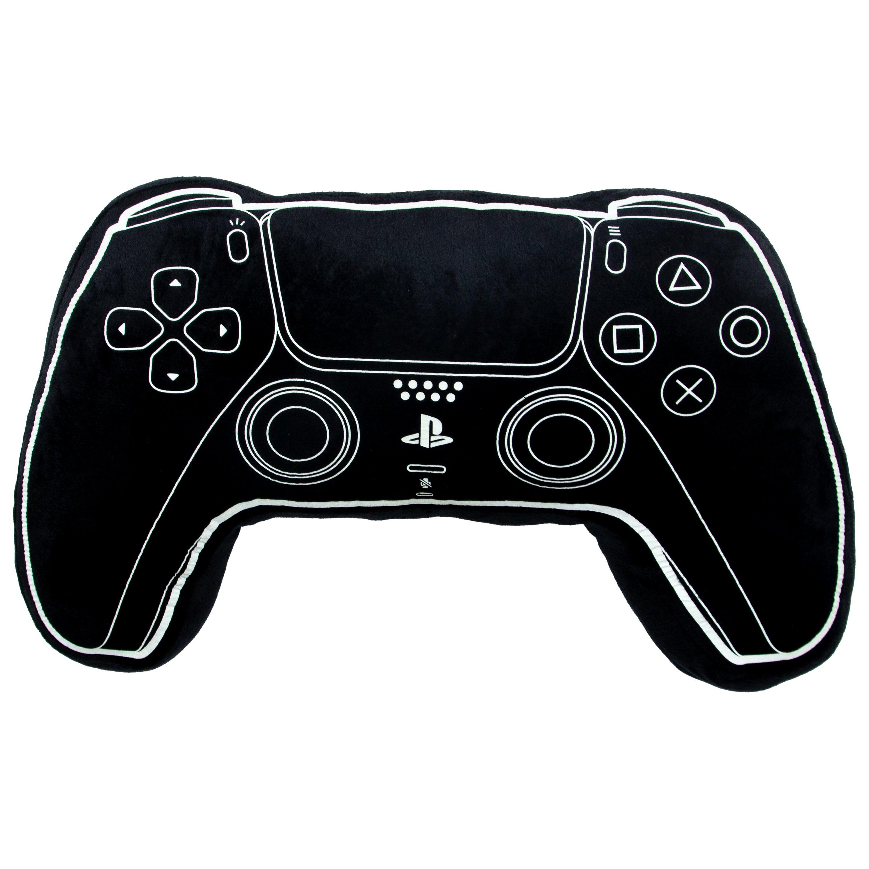 Great for gamers young and old, and ideal for fans of Astrobot, God of War, Spiderman, and The Last of Us, this officially licensed Sony PlayStation cushion makes for a great gift all year round. This official controller inspired glow in the dark cushion is shaped like the Sony PlayStation 5 gamepad, complete with printed detail. Featuring glow in the dark detailing around the analogue sticks, face buttons and PS PlayStation logo, all set on a textured black fabric, which runs around to the reverse. Perfect as a Christmas present, or a gift for anyone celebrating the holidays, kids or adults, and great to brighten up a child or teen’s bedroom. It’s packed with padding to support them when they’re gaming in a chair, and comfortable enough to snuggle up on a sofa with on movie night. The cushion measures approximately 27 x 40cm, and is perfect for any gamer or PlayStation fan young or old. This shaped cushion makes for a perfect companion accessory to our official Sony PlayStation bedding set, with reversible duvets, towels or fleece blankets.