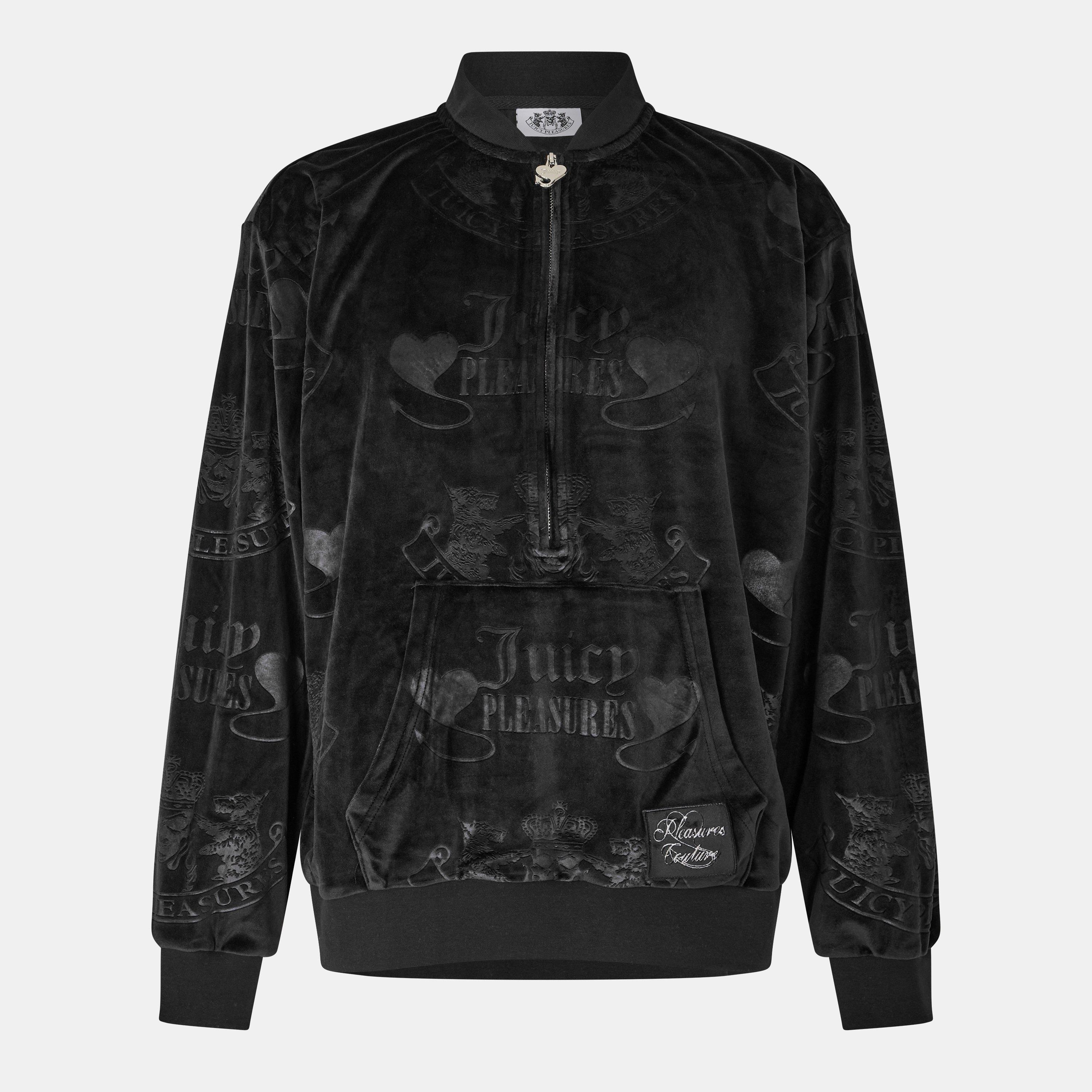 Elevate your wardrobe staples with the Pleasures X Juicy Couture Crest Velour Quarter Zip - a limited-edition collaboration uniting early 2000s glam with modern street culture. Marked with allover embossed logo graphics uniting both brands.