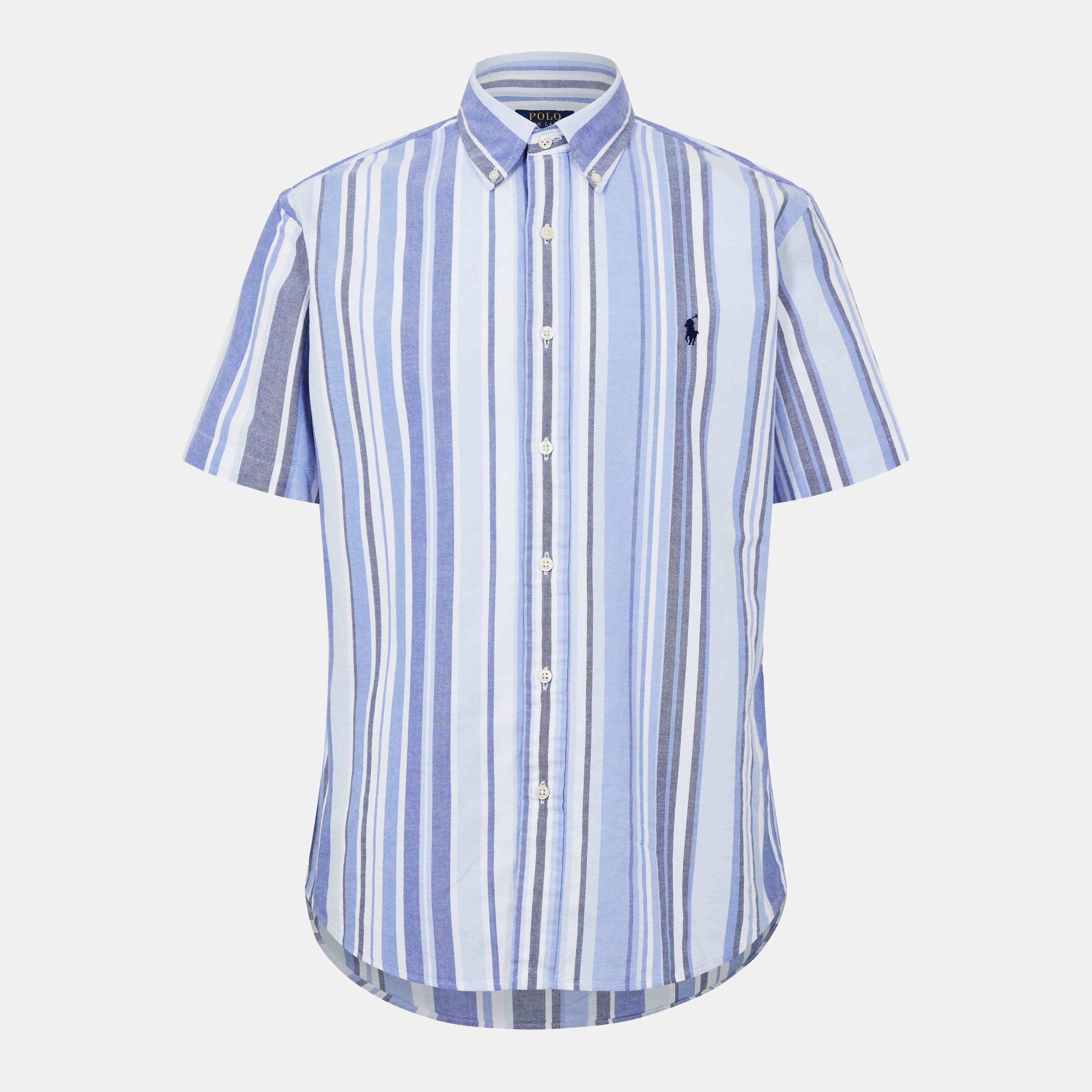 Revitalise your everyday collection with the Custom Fit Striped Oxford Shirt from Polo Ralph Lauren. Cut to a trim silhouette and tailored at the waist for a structured look, this men's short sleeve shirt is ideal for a sophisticated summer garden party, a destination wedding or relaxing at home.