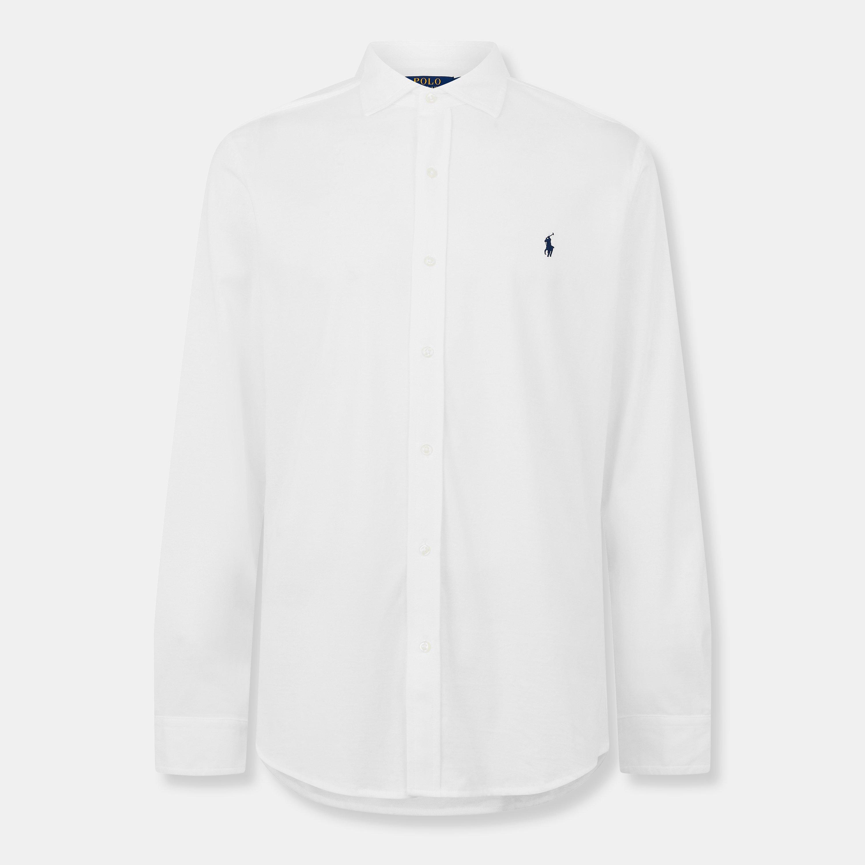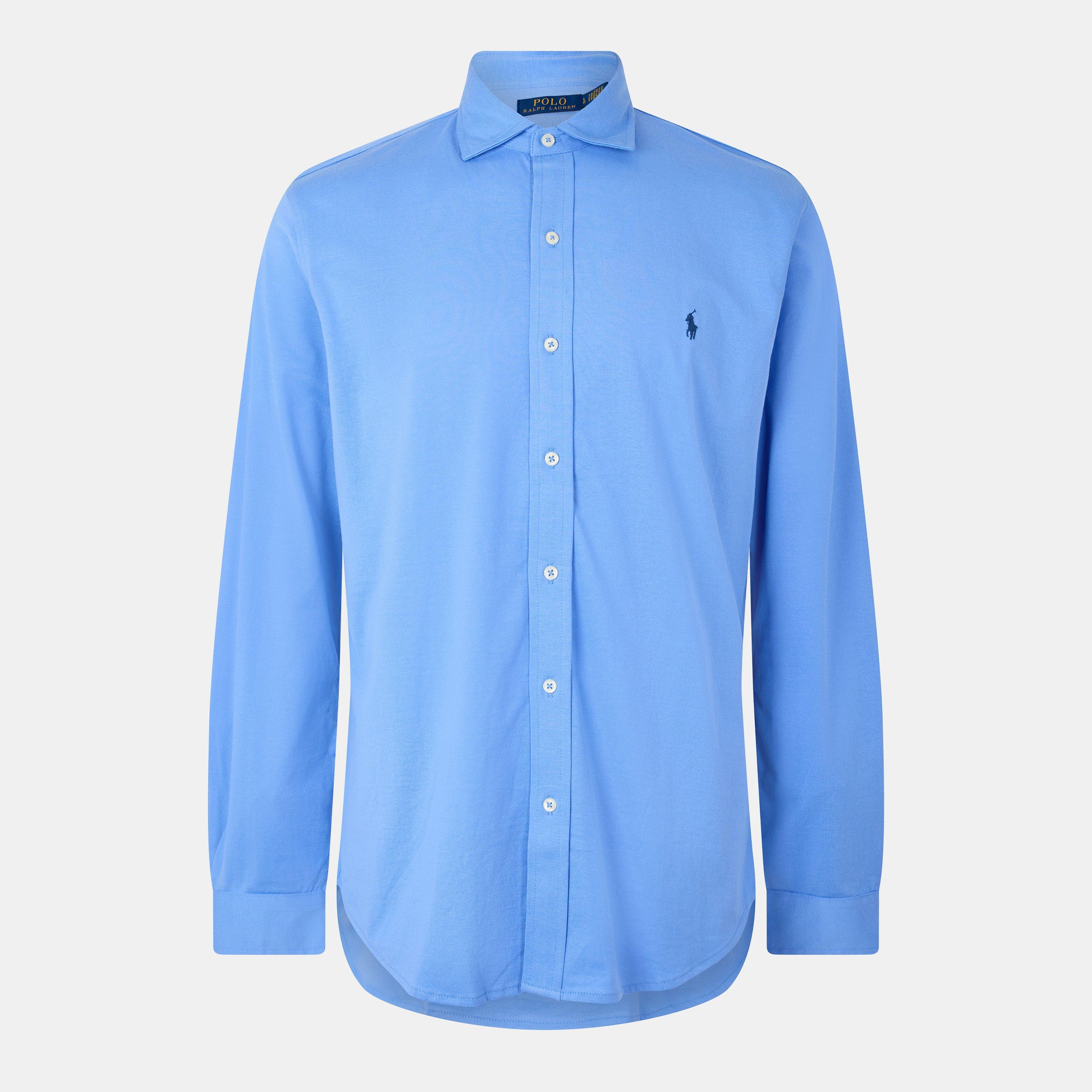 This Cotton Jersey Shirt combines the polished look of a Polo Ralph Lauren signature collar shirt with soft, comfortable cotton jersey. Cut in a regular fit, this shirt features a central button fastening, a pointed collar, long sleeves, buttoned cuffs and a curved hemline for a classic style. The look is finished with the brand's signature pony logo embroidered to the chest for brand recognition. Great with jeans or smart trousers, to deliver a presentable outfit choice. Machine washable at 30 degrees.
