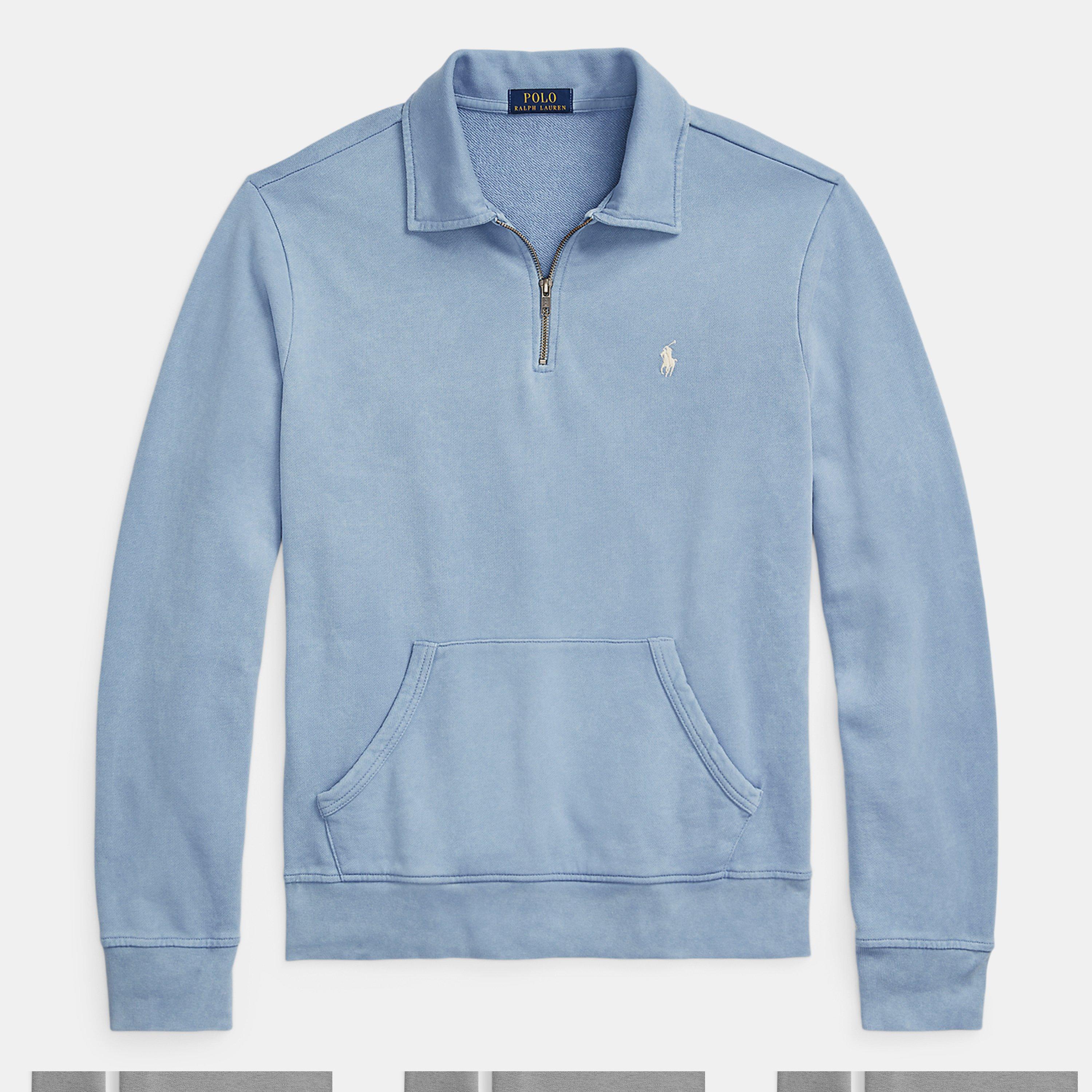 Stay warm in effortless style with the Polo Ralph Lauren 1/4 Zip Sweatshirt, a timeless addition to your casual wardrobe. Designed in a soft hue for versatile styling, the sweatshirt features ribbed trims for a snug fit and a refined touch. The iconic embroidered Pony at the chest adds a signature finish, ensuring a look of understated luxury. Perfect for laid-back weekends, casual outings, or layering up in cooler weather.