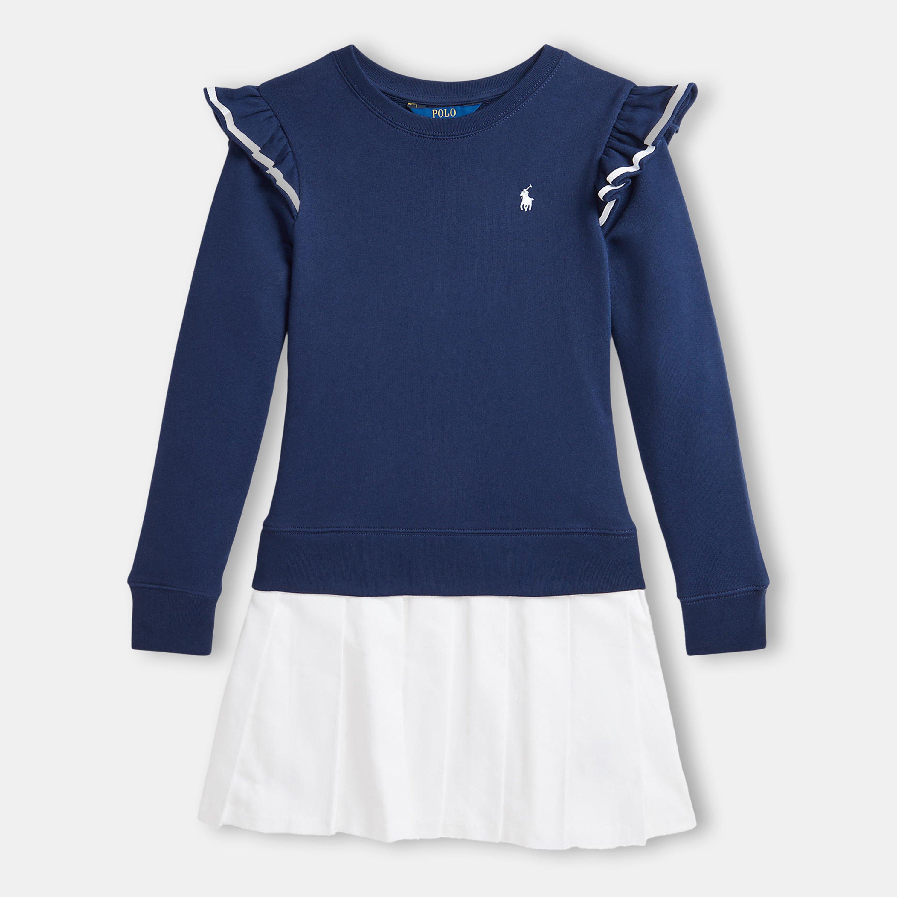 Enhance your mini-me's wardrobe with Polo Ralph Lauren's Woven-Skirt Terry Dress, a brand synonymous with high quality and timeless style. Featuring the signature embroidered pony motif at the chest showcasing a symbol of prestige and exclusivity. From outings with friends to family occasions, this mini dress is perfect for your young one.