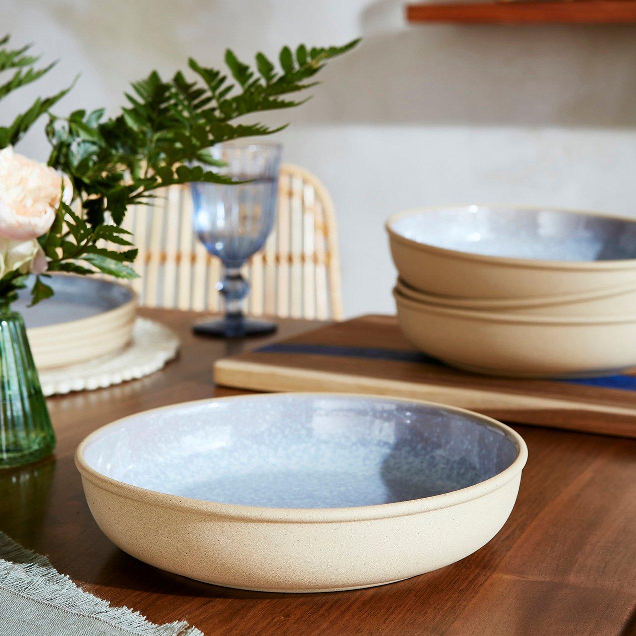 From the consciously designed Portmeirion Minerals collection, this set of four Low Bowls is a must-have for your collection. Textured on the outside and featuring a reactive glaze on the inside to give each stoneware bowl its own unique characteristics.