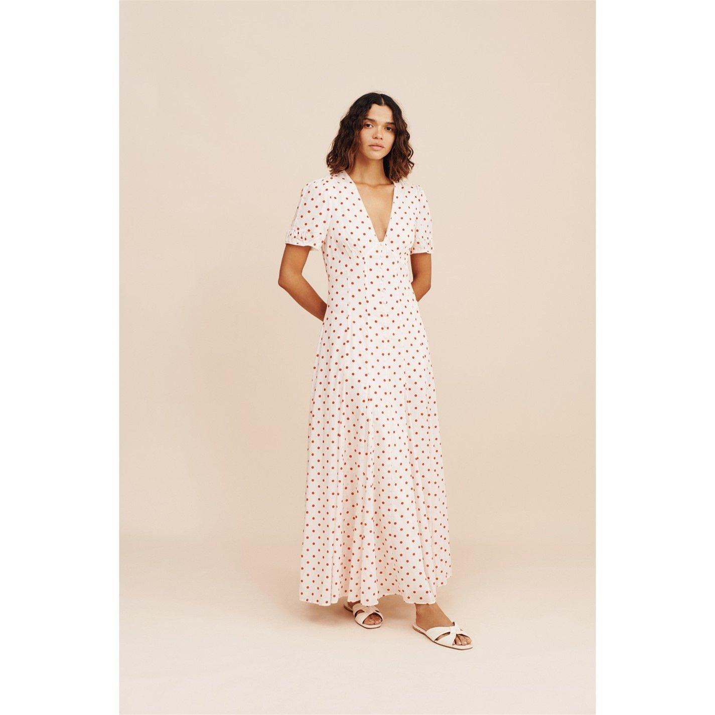 The Paloma Square Neck Dress is the definition of playful elegance, adorned with our citrus floral print. It is cut from a cotton blend fabric and fits slim through the bodice before falling to a floaty full skirt with statement godets.