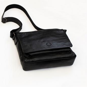 Rica Large Black Leather Messenger Bag
