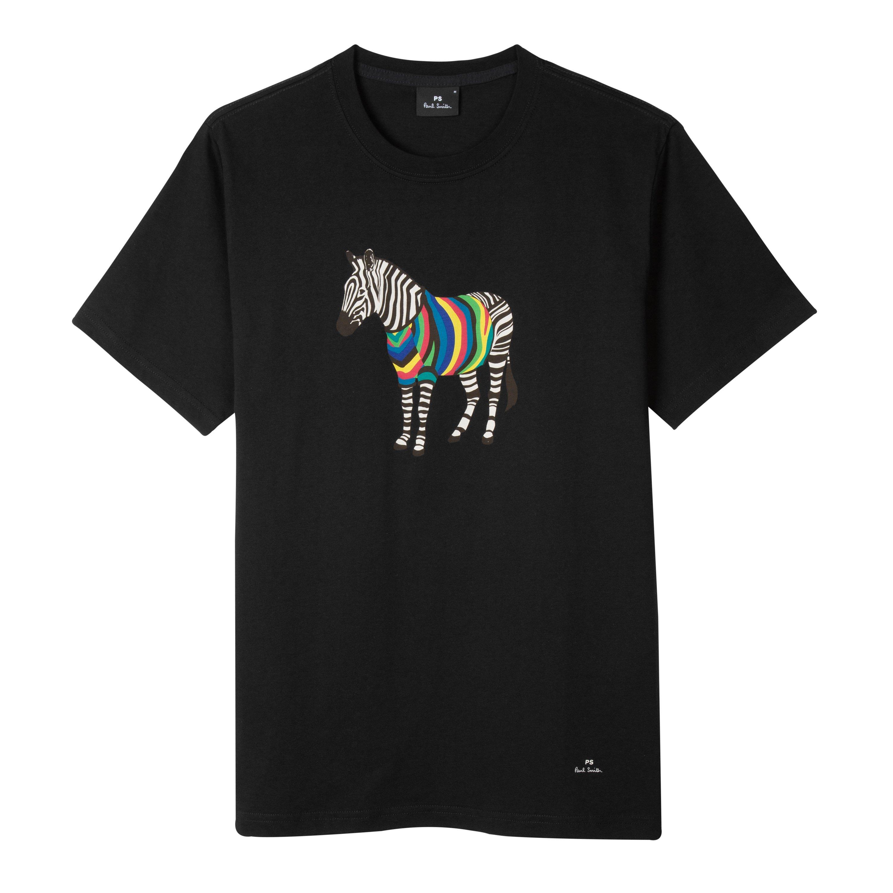 Make a statement with this distinctive PS Paul Smith T-shirt featuring a playful zebra design with a vibrant rainbow twist. The regular-fit silhouette offers a classic shape that pairs effortlessly with your everyday wardrobe. This artistic T-shirt showcases PS Paul Smith's signature blend of British wit and contemporary style through its striking graphic print.