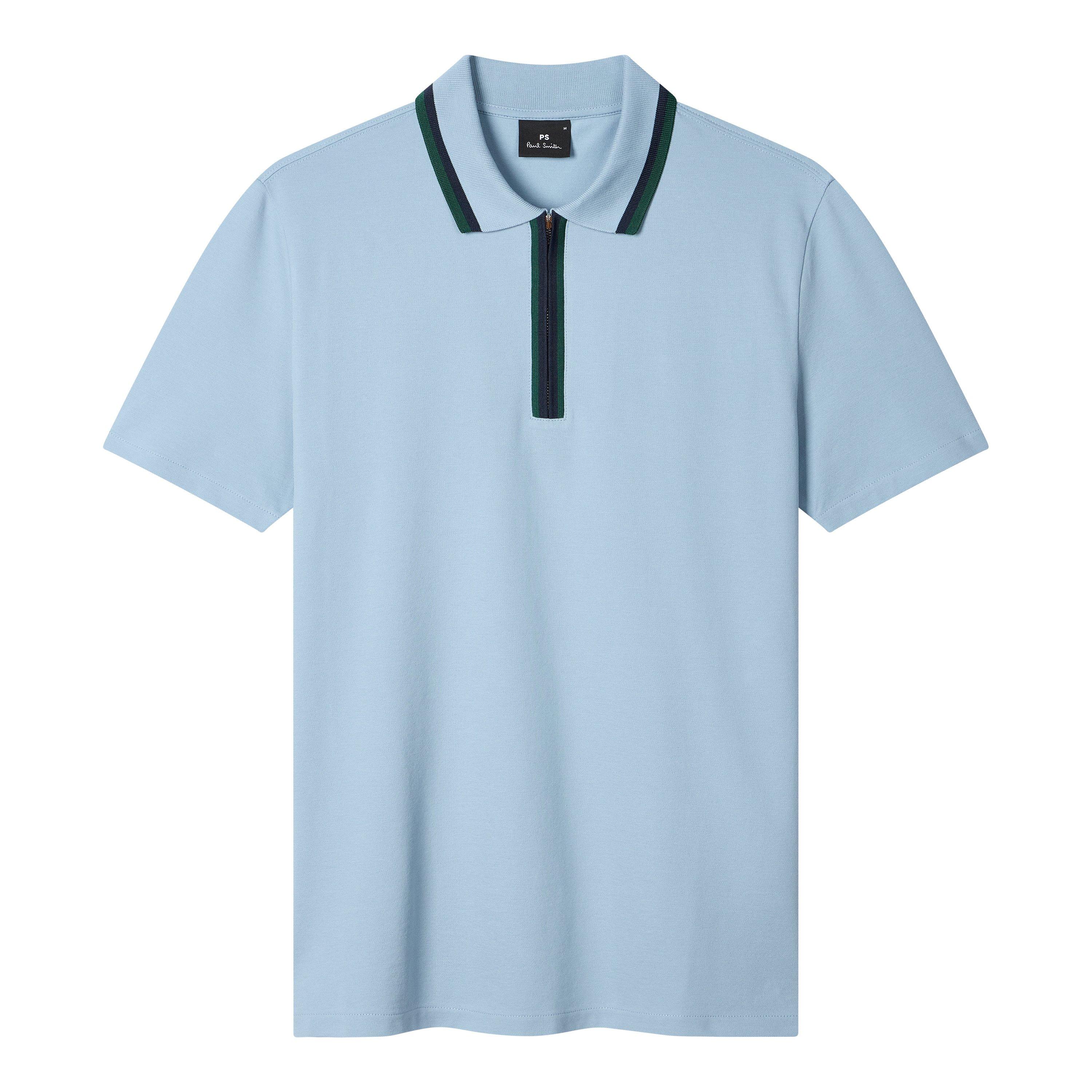 The PS Paul Smith Men's Zipped Short Sleeve Polo Shirt is built around a functional zip collar that allows adjustable coverage. The design maintains a streamlined profile through classic polo styling.