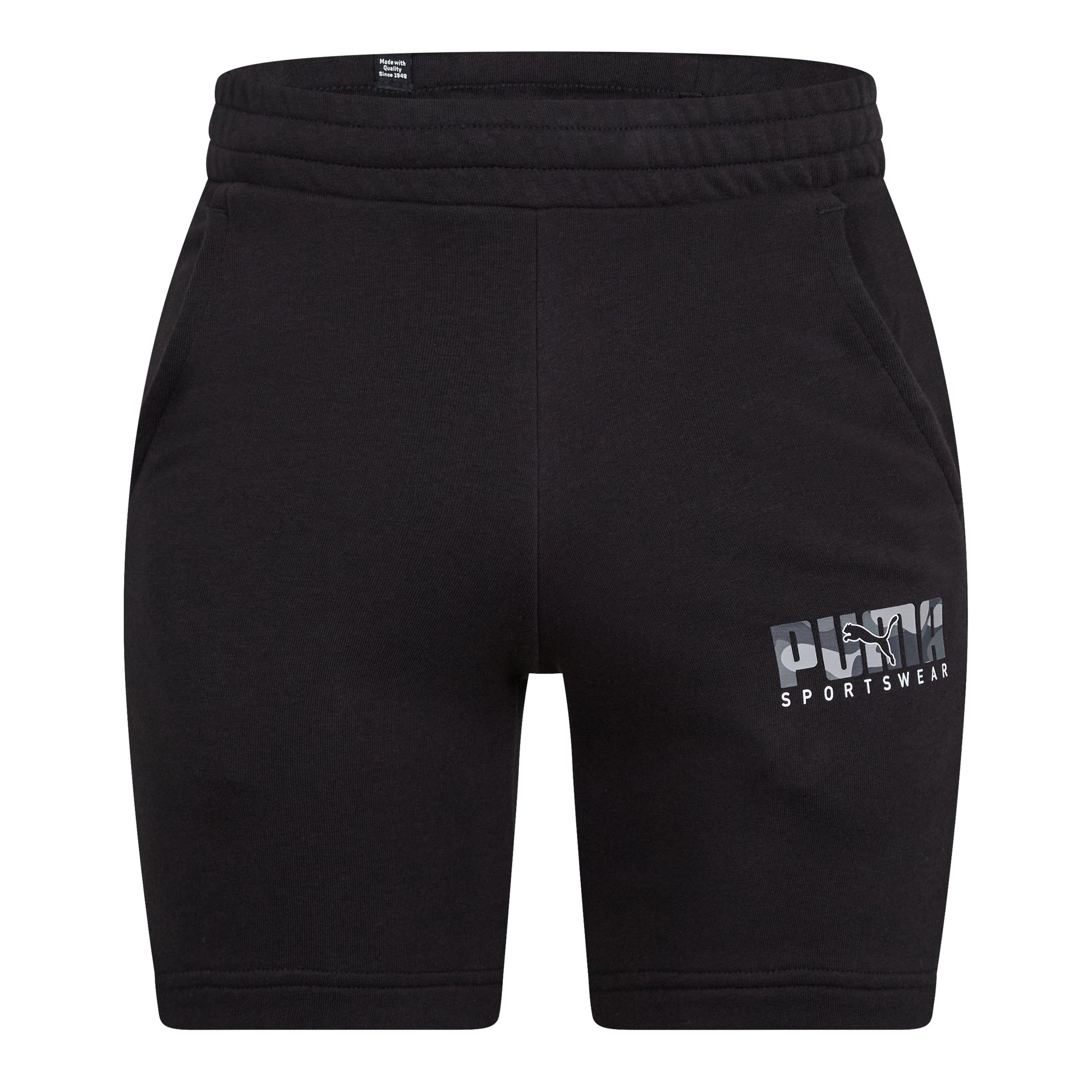 Puma's Key Graphic Jogger Short offers comfort and athletic design elements. These casual shorts feature a structured jogger profile with camo graphic detailing for a modern aesthetic, ideal for lounge wear or active pursuits.