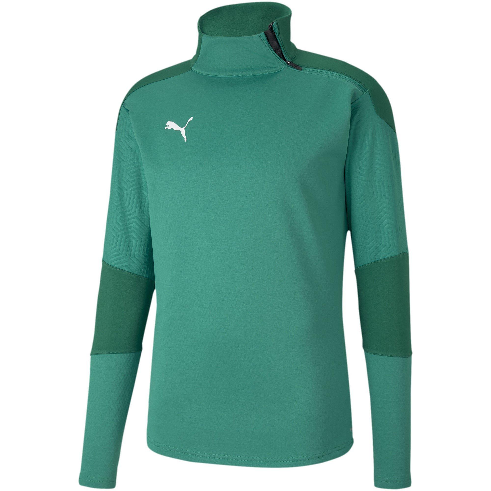 Puma's Training Drill Top offers function with understated style, great for workout sessions and athletic performance. The soft fleece fabric provides warmth with a sleek shape and detailing, making it ideal activewear for both gym training and casual fitness activities.