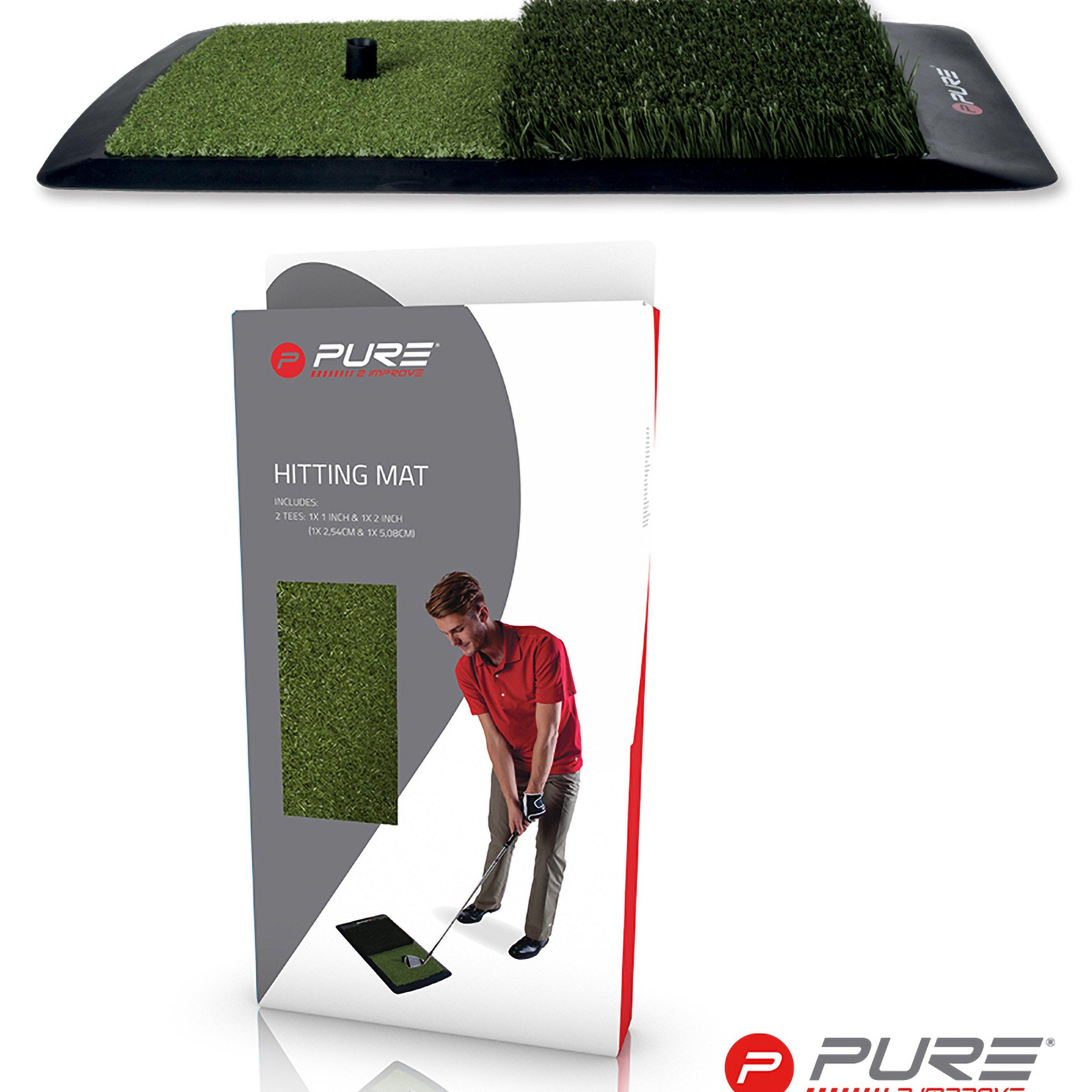 With 6 out of 10 shots of all golf shots on a course being made with either an iron or a driver, the Pure2Improve Hitting Mat is the perfect portable training aid for all golfers who want to practice their chipping and driving. The Hitting Mat splits into two different sections; one half provides artificial short turf which simulates the green you would find on the fairway, the other half of the mat provides longer turf to simulate more of the rough. Included with this Hitting Mat are two long-lasting removable rubber tees (47mm and 57mm) which enable you to practice your driving to your heart,s content without having to visit a driving range.