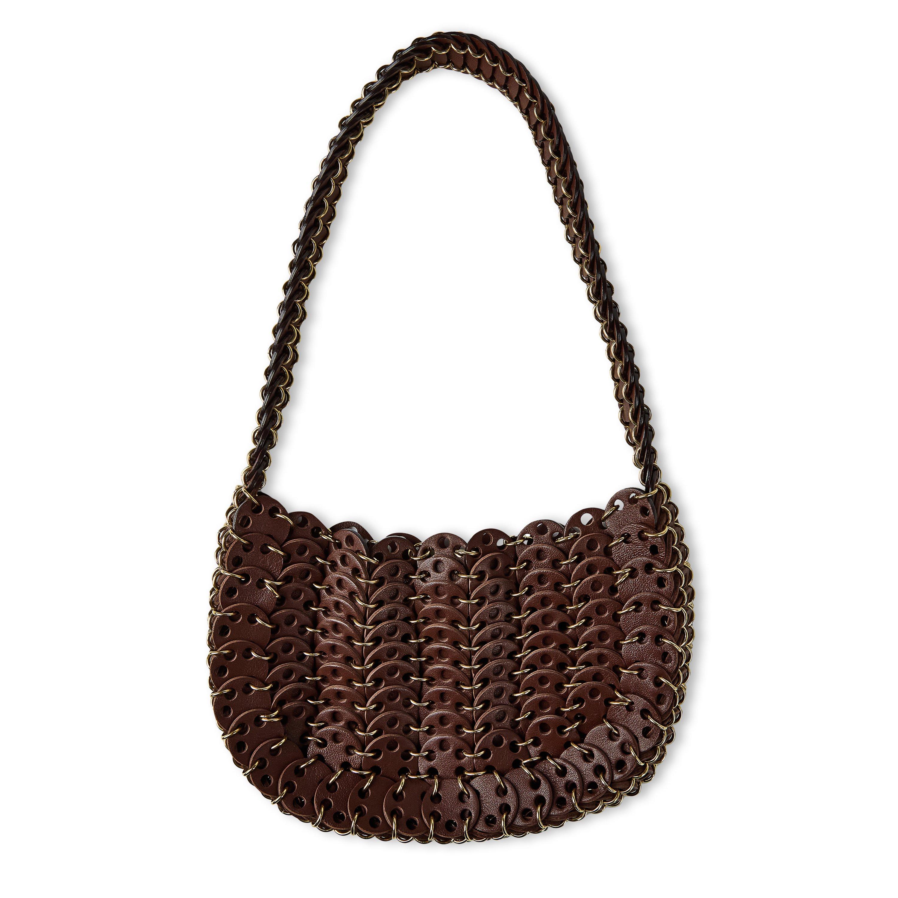The Rabanne Chainmail Shoulder Bag features a sleek, smooth grain leather design, elevated by striking chainmail detailing. This modern yet edgy piece includes a secure magnetic fastening, a spacious main compartment, and a single shoulder strap for ease of wear. Its bold, refined aesthetic makes it a standout accessory, blending contemporary style with timeless functionality.