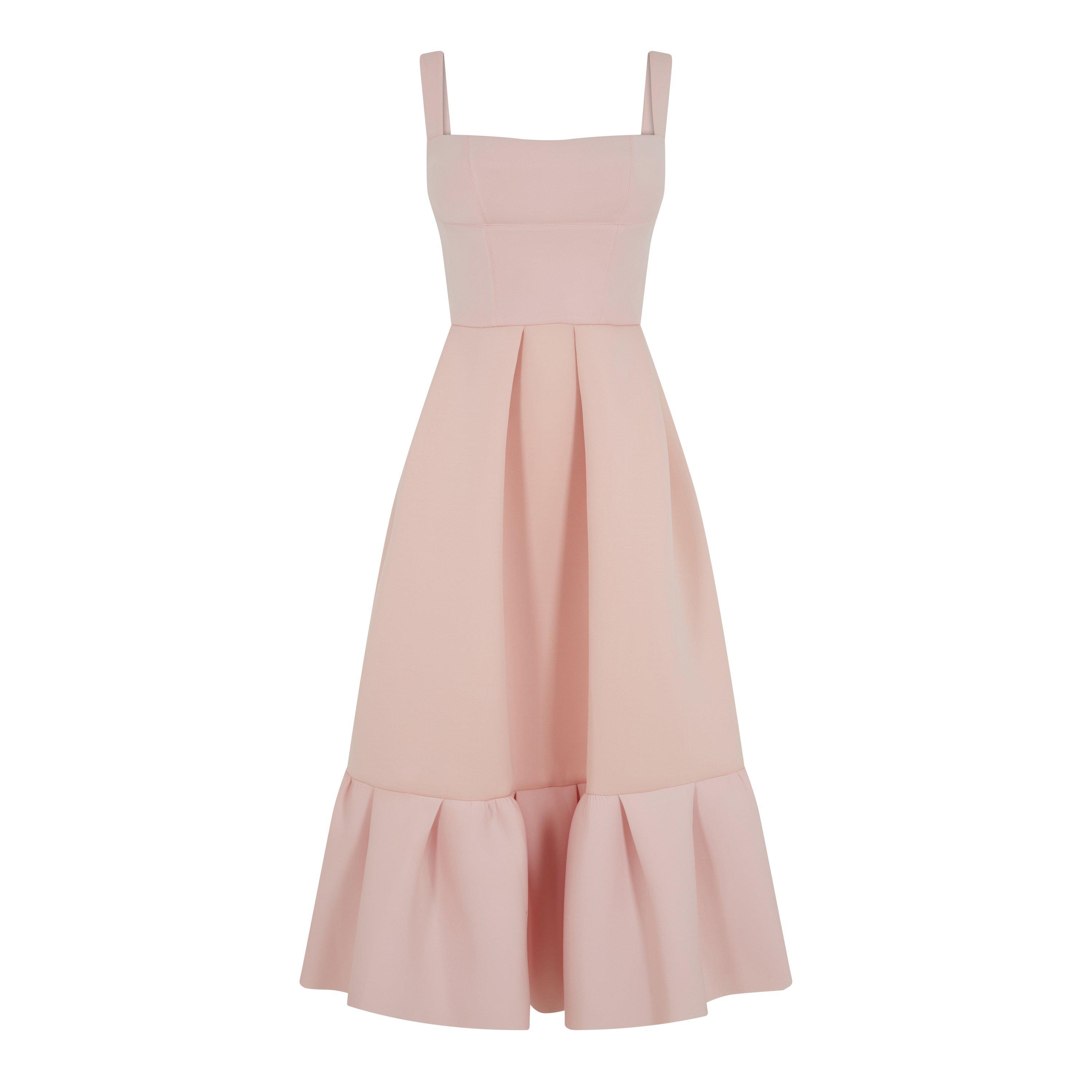The square neckline, adorned with delicate shoulder straps, exudes timeless sophistication, while the rear zip fastening ensures a seamless and tailored fit. The enchanting loose pleat detailing around the hemline adds a touch of whimsical charm to this gorgeous pink creation. Effortlessly transitioning from day to evening, the Cora Midi Dress embodies versatility, offering an impeccable choice for a spectrum of special occasions. Whether basking in the glow of a garden party or attending an elegant soirée, this dress exudes grace and refinement, ensuring the wearer stands out with grace and poise.