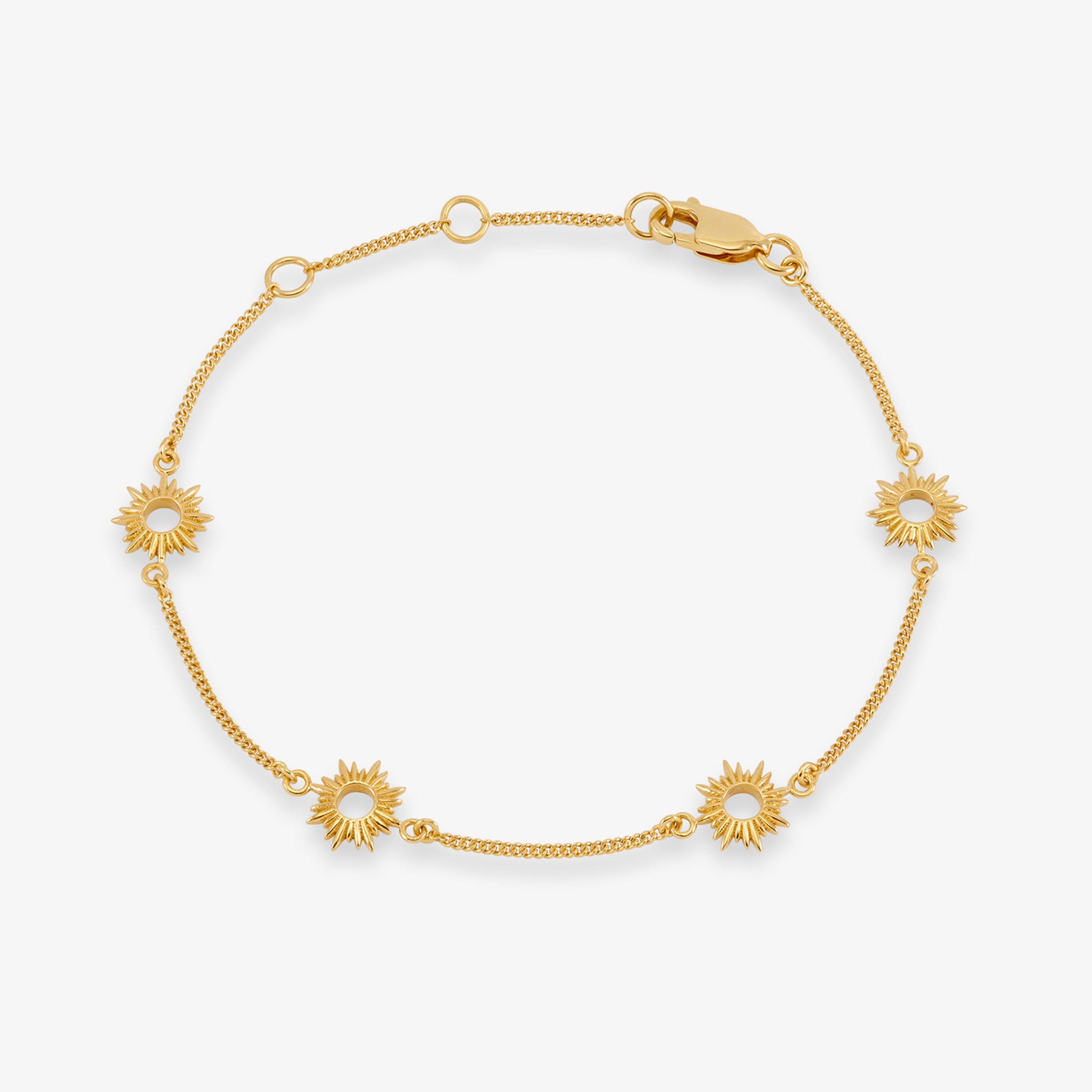 The Rachel Jackson London Min Sun Blet Charm Bracelet features a sun-inspired motif suspended from a delicate chain. Minimalist in design, this piece offers subtle detailing for everyday wear.