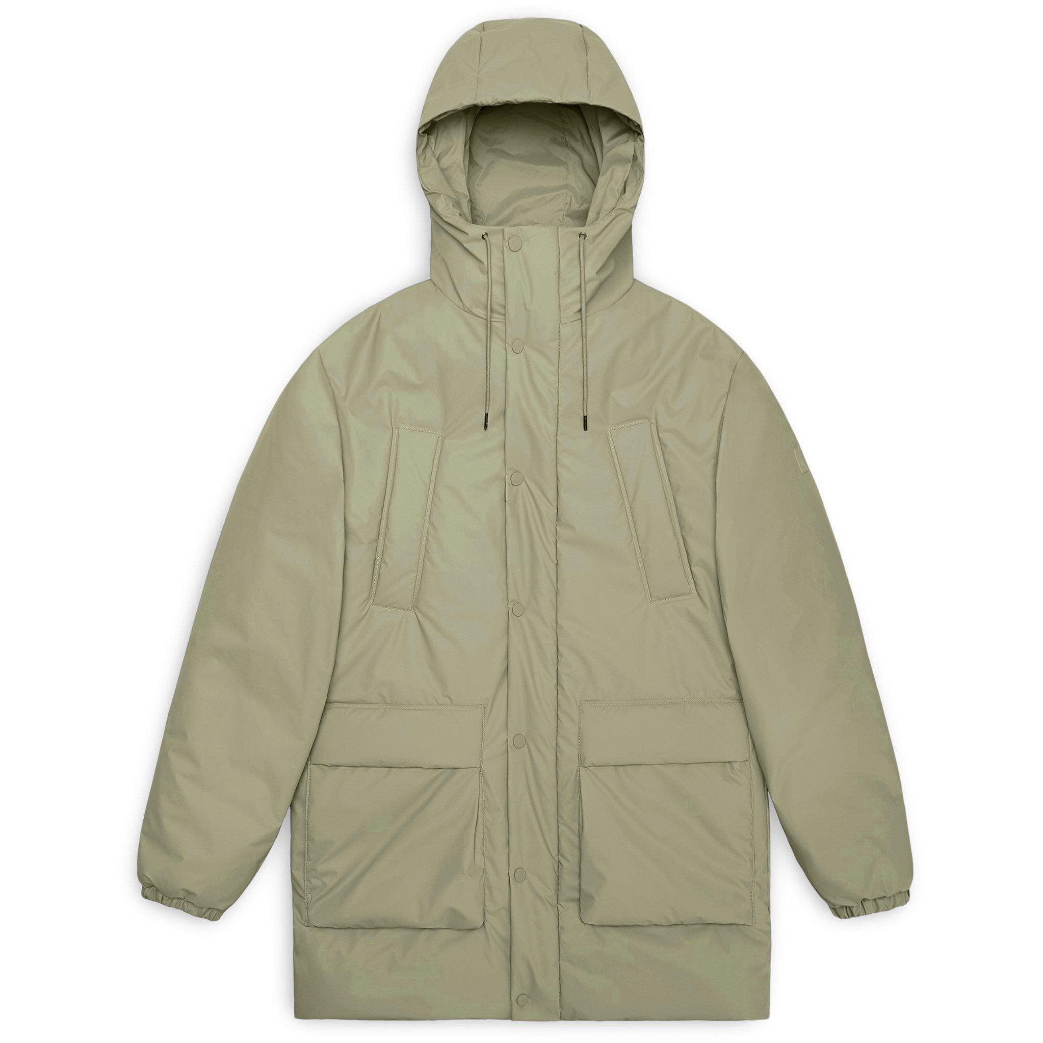Rains Lohja Long Waterproof Insulated Cargo Parka offers both practicality and transitional style. This lightweight coat features a long cut with cargo pocket details, breathable waterproof fabric with welded seams, and light insulation that bridges the gap between rainwear and winter jackets.