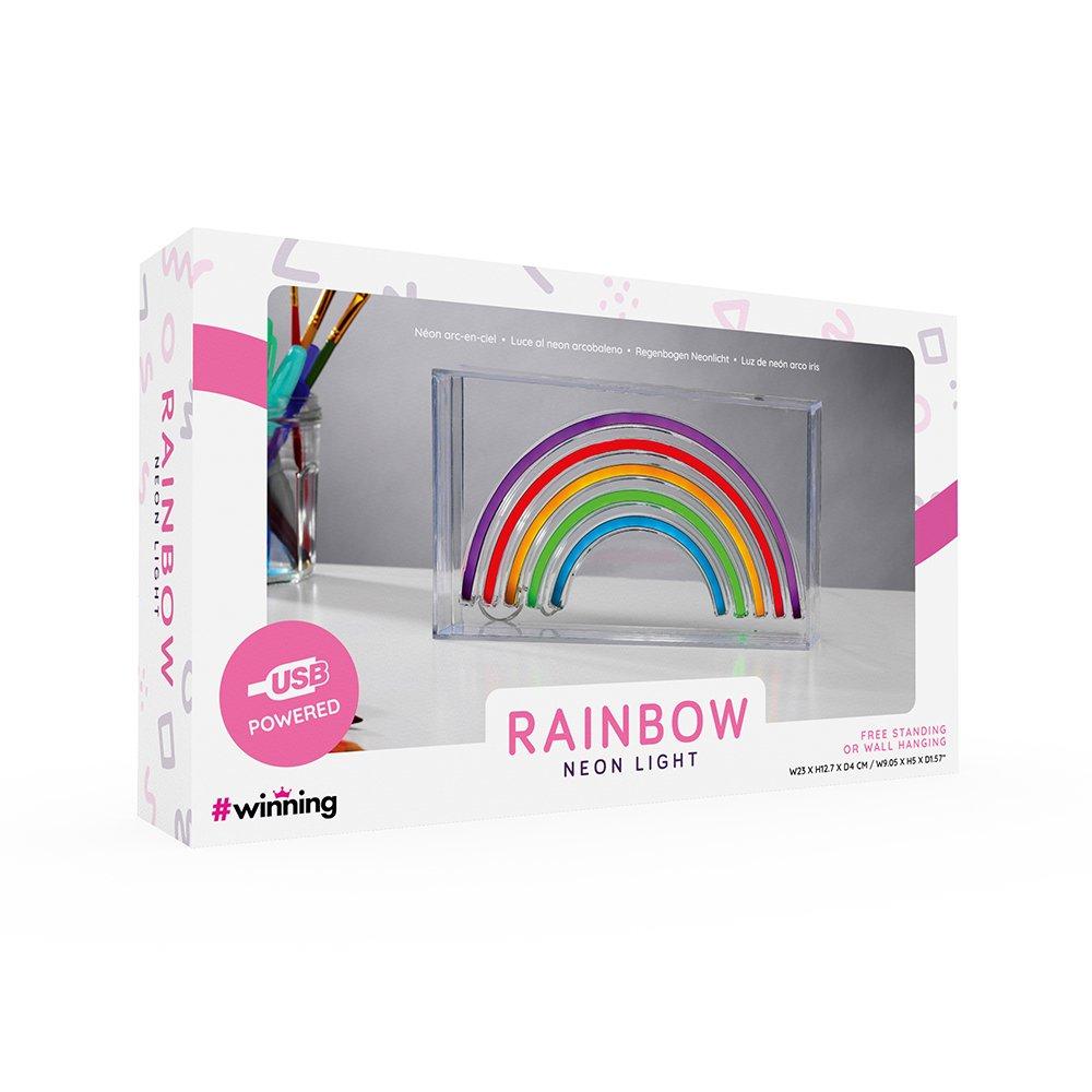 It's an acrylic light box with a rainbow neon inside! Living up any room with this free standing neon light. Great for making anyone feel positive. Ideal for any space in your home that needs brightening up. A great gift for someone or a treat for yourself for your home. Multi-cooler LEDs. USB powered Here to bring positivity to your day, this cheerful rainbow neon light glows five fabulous colours! Spice up your home office, living room or kids bedroom with this rainbow neon light in a stylish acrylic box. This freestanding tabletop decorative piece is the ideal addition to your home. It is not only a light box that you can buy for yourself but it is also a great gift for someone else!.
