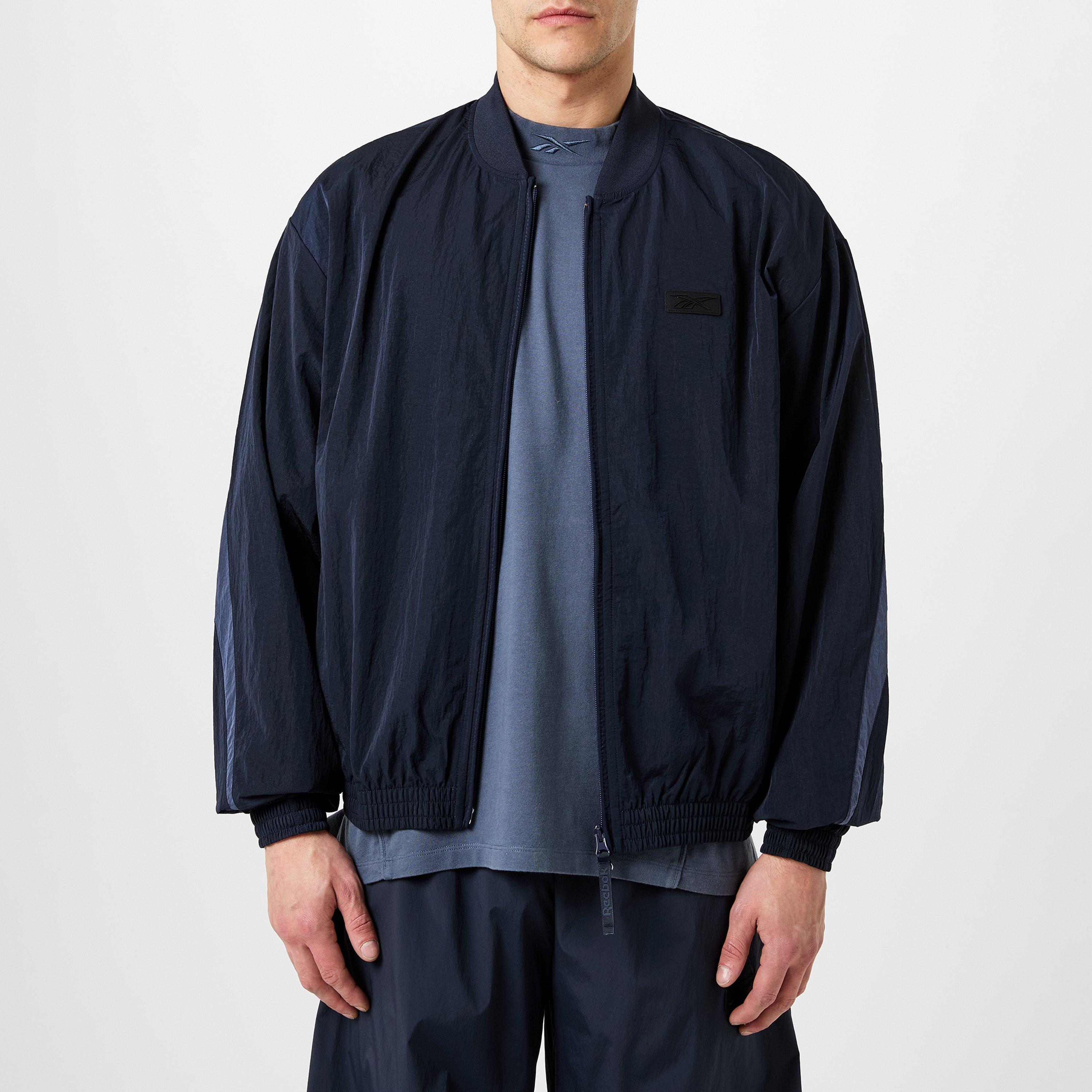 - Silicone Vector patch displays the Reebok brandinga global following, with fans including A$AP Rocky, Niall Horan, and Justin Bieber. This Pannelled Crinkle Tracket Jacket embodies the label's signature aesthetic, meticulously fashioned in crinkled technical nylon, and cut in a genderless style. A contemporary reimagining of a classic silhouette, this sophisticated piece features a rib-knit stand collar framed by full-length balloon sleeves. Two zip-fastened hand pockets flank a central front zip fastening, and elasticated trims at the cuffs and hemline offer all-day comfort and add texture. Contrasting panels to the rear of the arms and back offer a fashion-forward touch, and discreet tone-on-tone stitching finishes the construction.