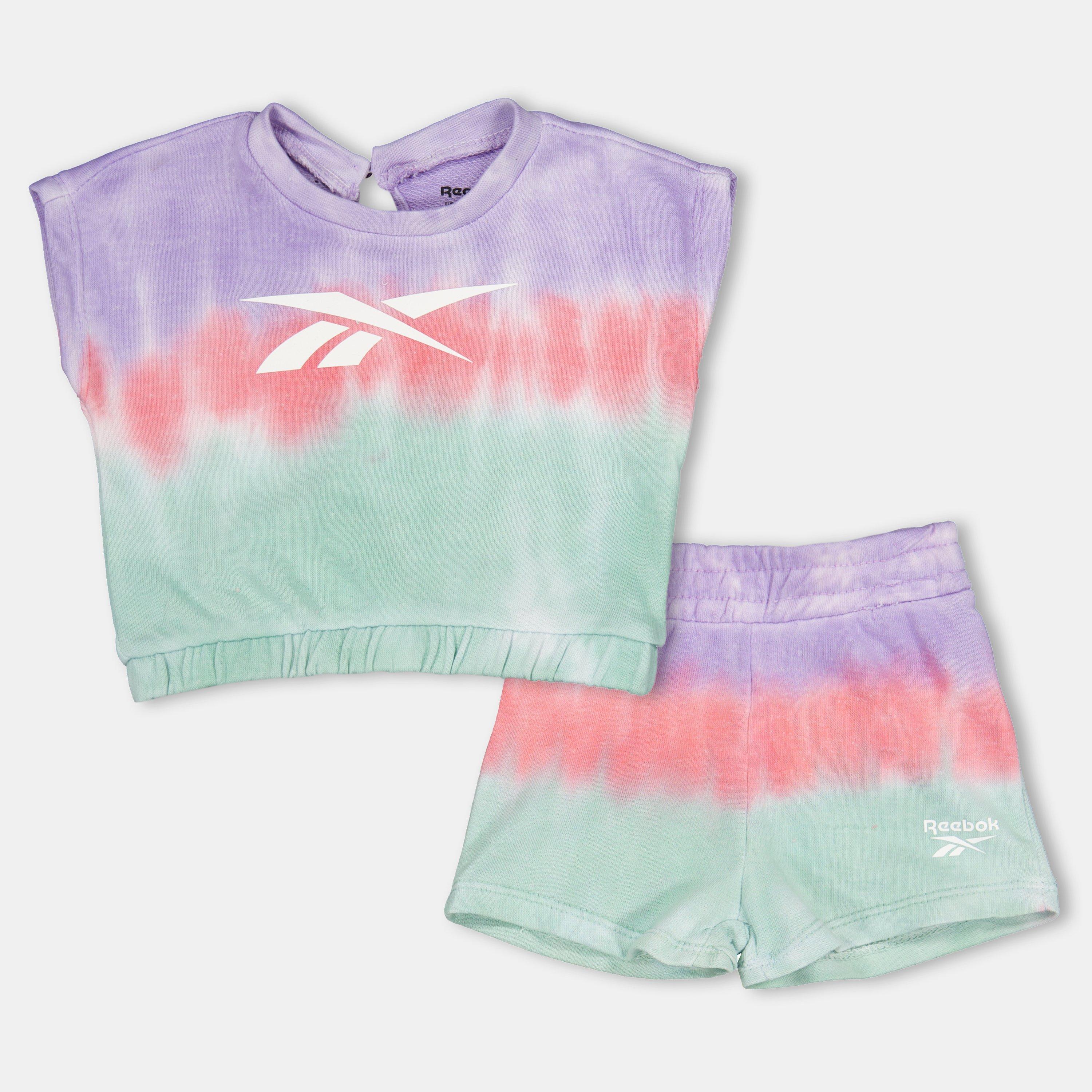 Vibrant patterns meet functional comfort in Reebok's Kids' Tie Dye Top and Short Set. This youth apparel outfit delivers bold visual impact while maintaining essential mobility that active children need.
