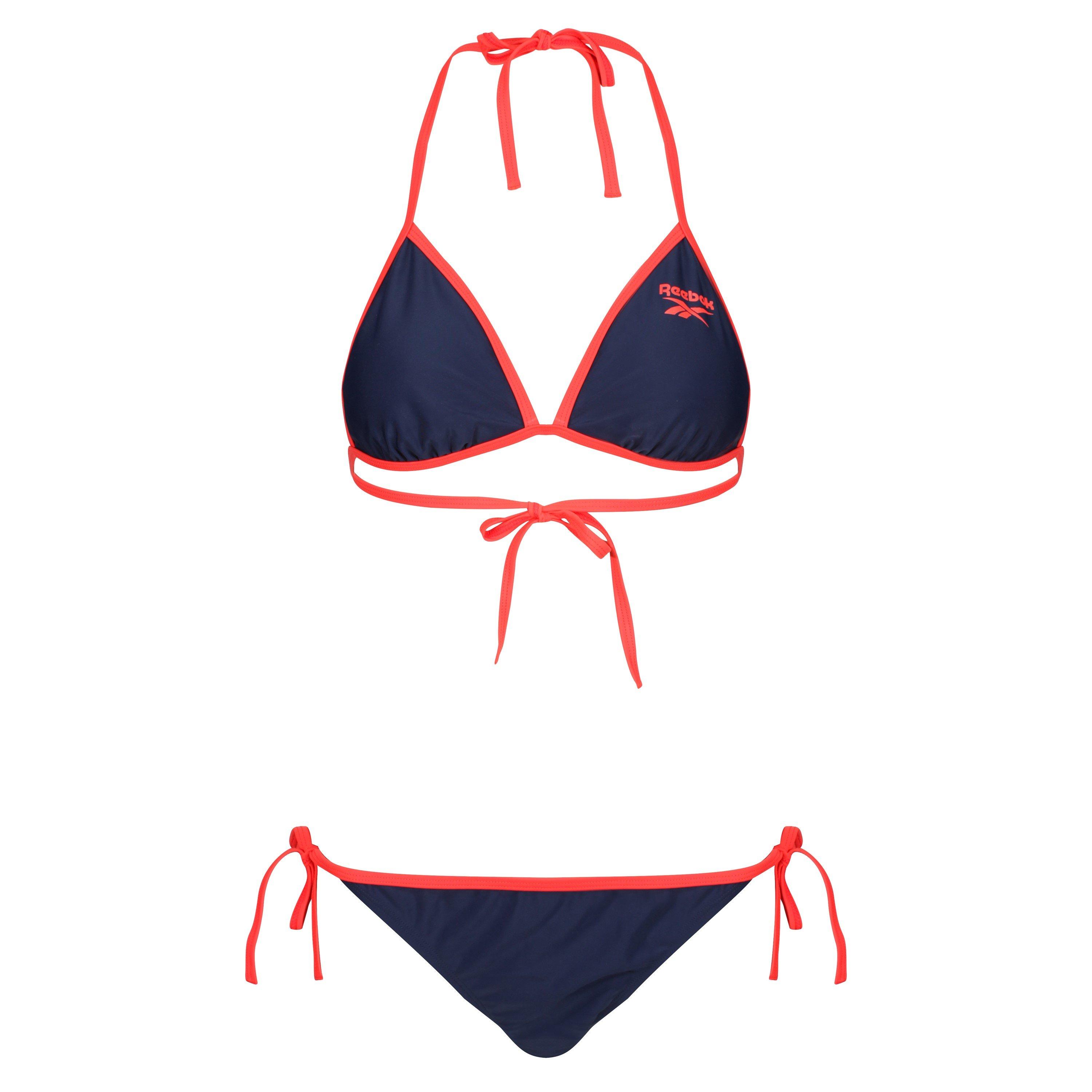 Make a sporty statement with the Reebok Women’s Triangle Bikini, combining sleek design with classic athletic style. Crafted from smooth, quick-drying stretch fabric, this two-piece features contrast trim and tie fastenings at the neck, back, and sides for a fully adjustable fit. Finished with the iconic Reebok logo on the top, it’s the perfect blend of comfort and confidence for pool or beach days.